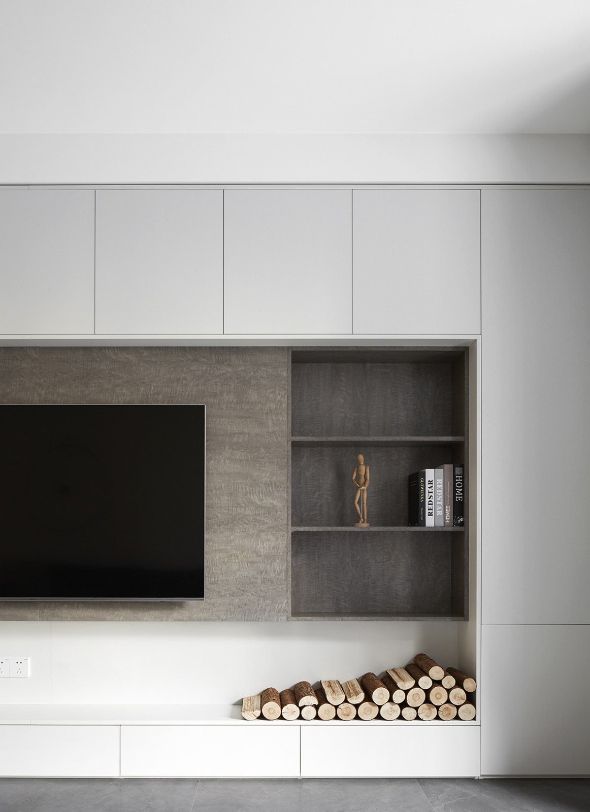 電視背景柜使用的是百隆按壓式五金,實現(xiàn)無把手極簡設(shè)計。純色的顏色搭配,更耐看,更舒適。