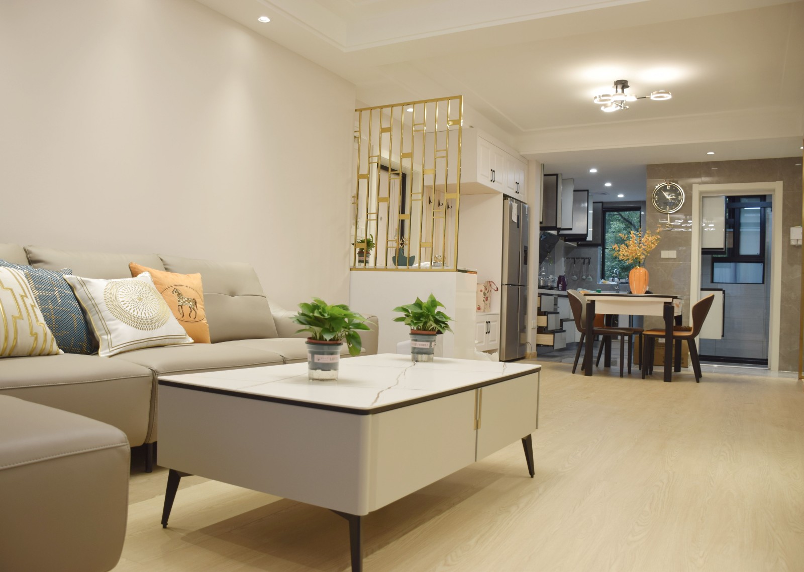 餐廳采用客餐廳一體的形式,將廚房的墻體拆改后,增強采光的同時視覺上又增大空間
