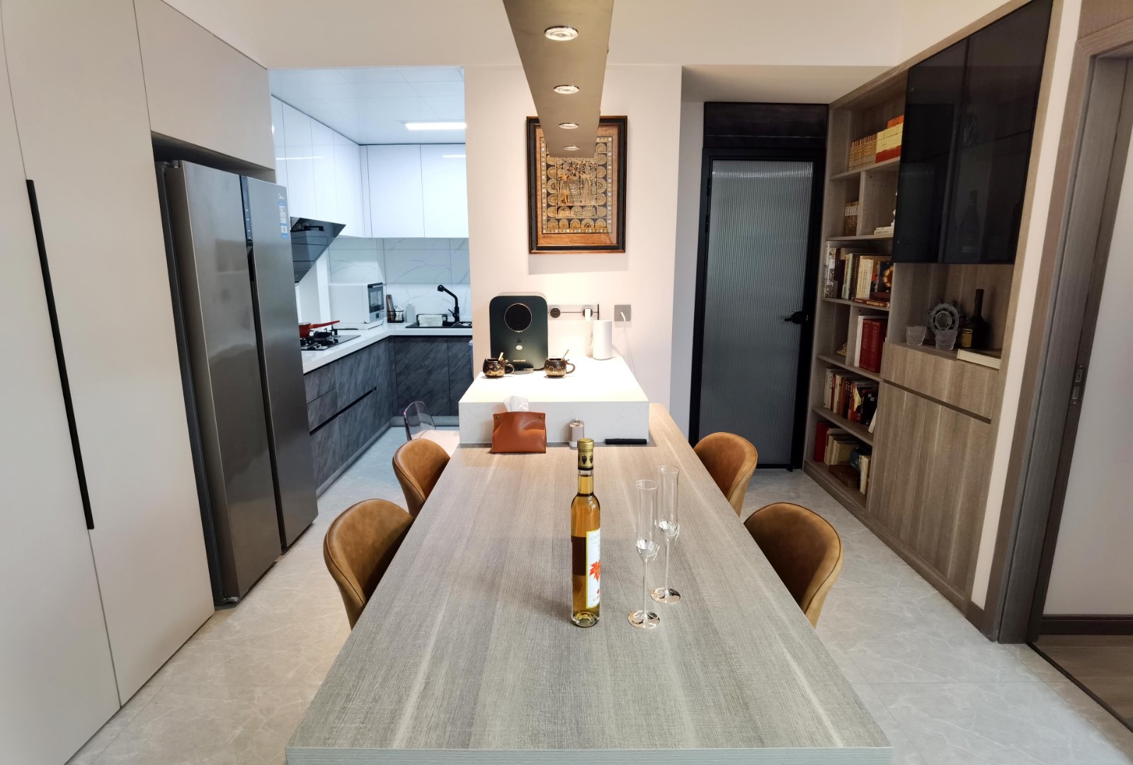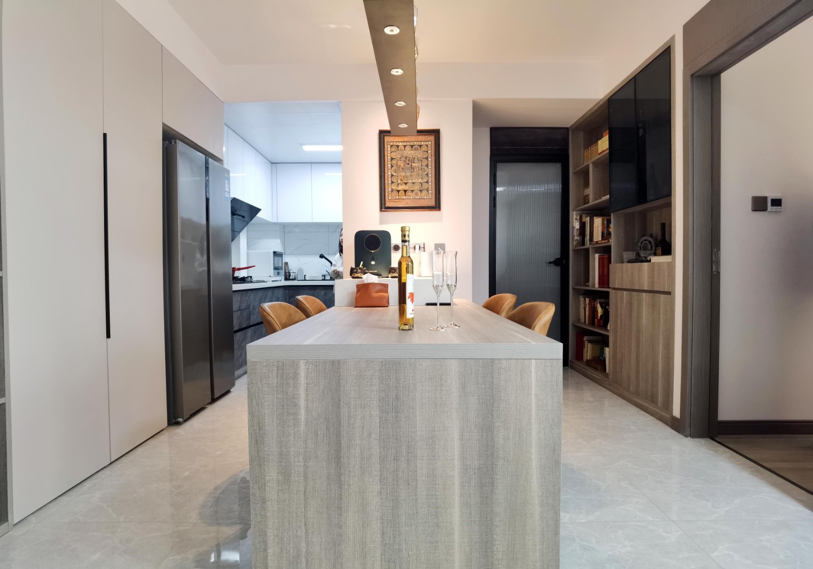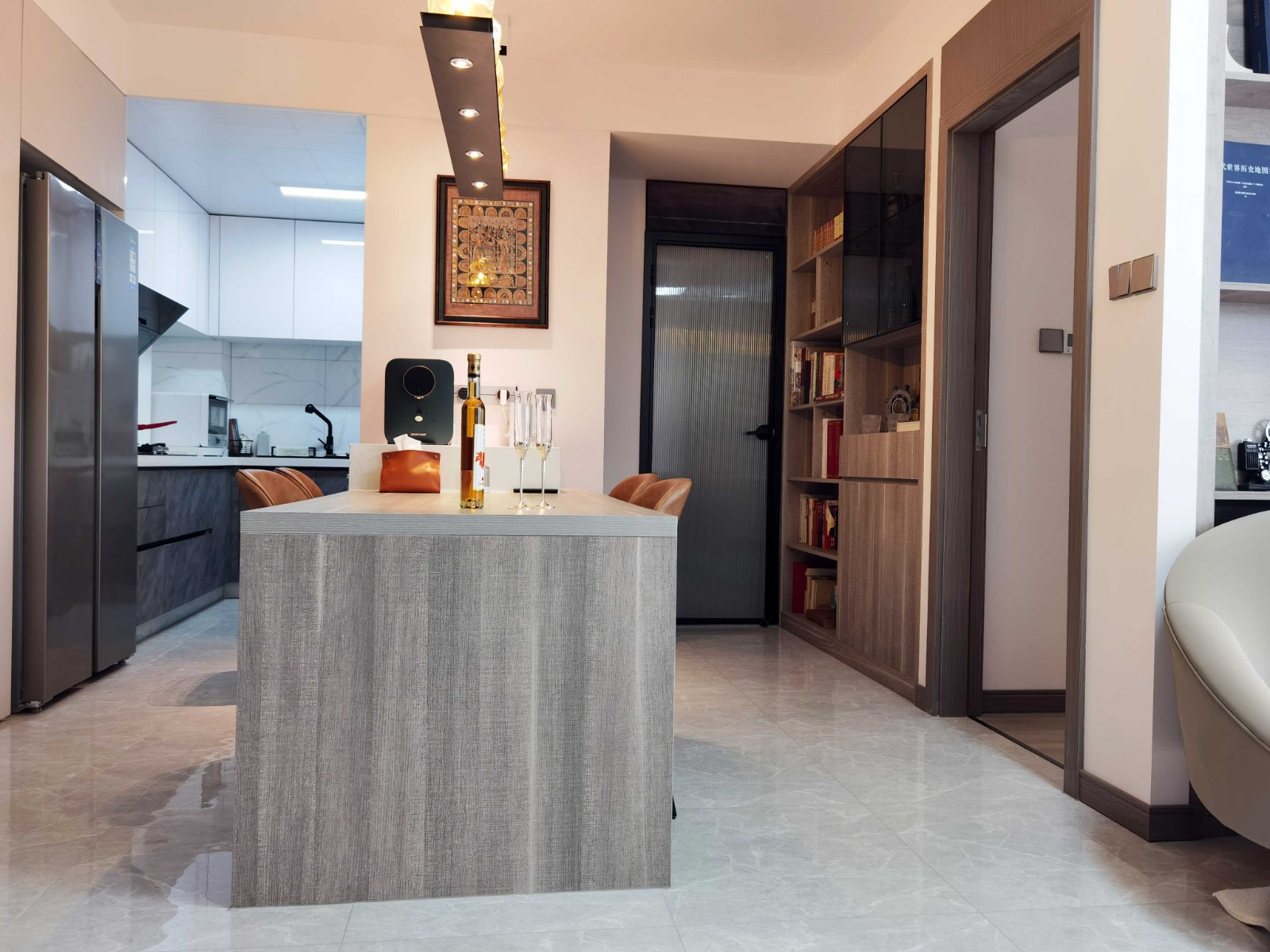 這是整個(gè)家里使用率***的一處,銜接廚房與客廳的重要紐帶,男女業(yè)主可在此處操作簡單的料理,喝咖啡,上網(wǎng),辦公,閱讀,吃正餐...