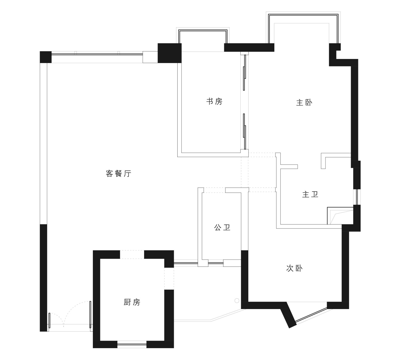小姐家的常住人口是夫妻二人+一個2歲的男寶寶,對于房子的訴求是: 1. 盡量寬敞明亮,收納功能要強 2. 爸爸平時工作較忙,回家后偶爾需要加班,所以需要給爸爸一個簡單的辦公位 3. 希望主臥空間大而通透,可以取消主臥的衛(wèi)生間 4. 希望廚房空間可以大一點 5. 保留一個次臥,作為臨時客房使用
