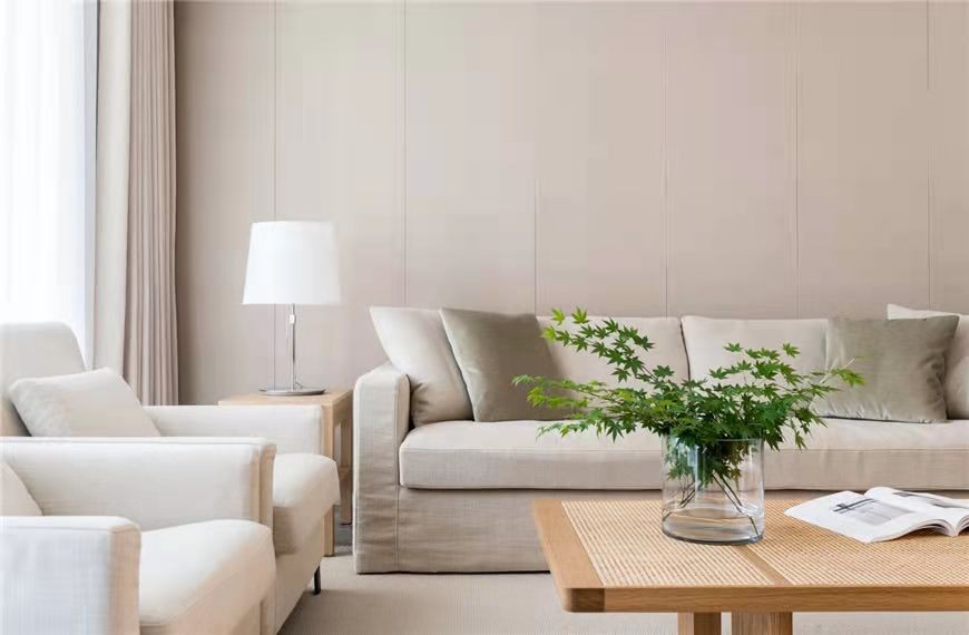 沙發(fā)背景墻采用淺灰色格調輕松舒適