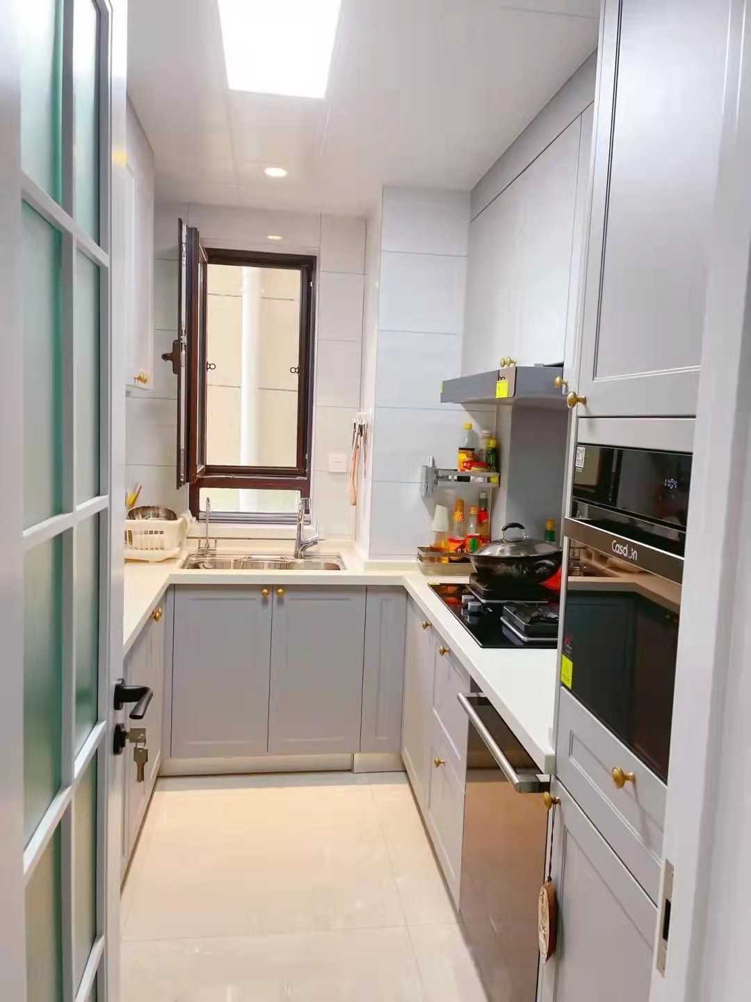 廚房根據(jù)結(jié)構(gòu)定制櫥柜,布局還算比較合理,還是蠻不錯的。定制櫥柜的時候,旁邊預(yù)留了位置,可以做一些嵌入式的家電,大小位置合適,使用的時候方便很多。廚房東西很多,有了置物架,可以方便收納,保持廚房整潔干凈。小小的廚房,能滿足三餐四季,很有生活氣息。