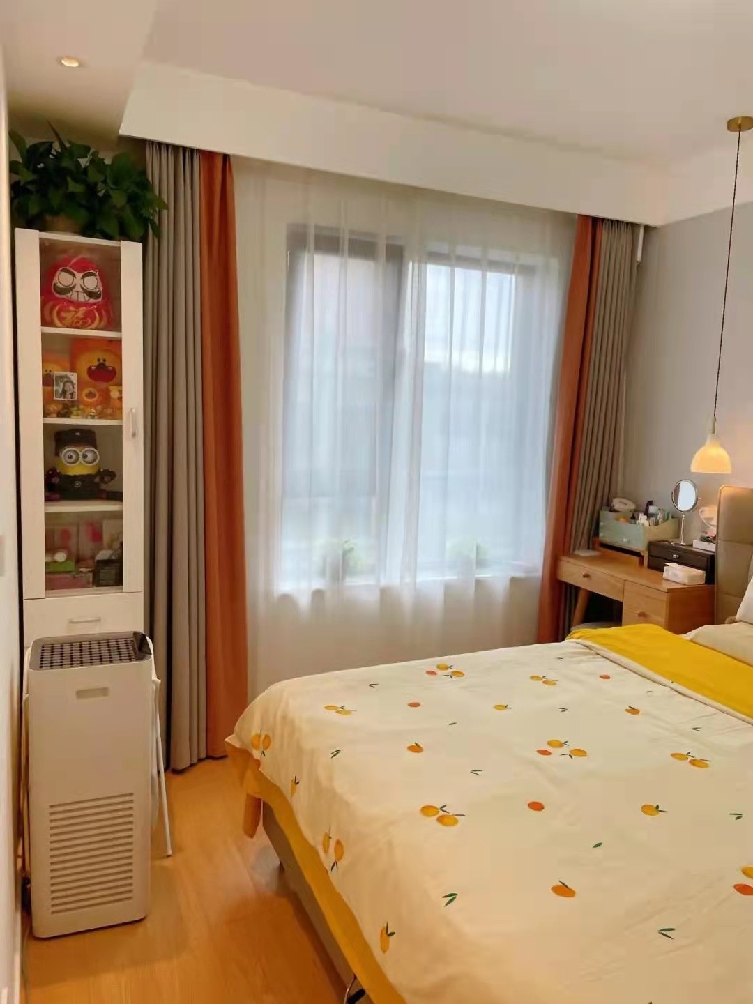 安裝了雙拼色的窗簾,色彩顯得更豐富,顏值更高。