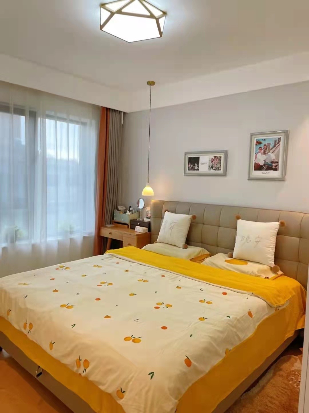 客廳和餐廳嚴(yán)格意義說是在同一個空間,通過布置家具劃分兩個空間,中間沒有做任何的隔斷??蛷d與陽臺打通,增加了很多室內(nèi)面積,顯得空間特別寬敞,室內(nèi)采光更充足。裝修北歐風(fēng)格,客廳布置了L字形沙發(fā),坐著很舒服,款式真心喜歡。頂面安裝的吊燈,晚上照明亮度足夠,不會讓人覺得必要。整個空間都是黃色調(diào),特別溫馨。