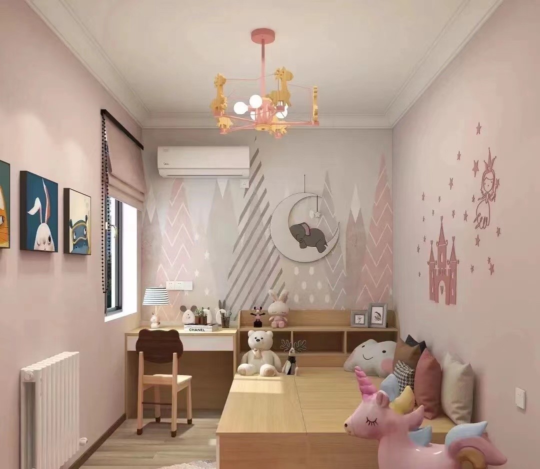 兒童房布置成了粉色,放滿了女兒喜愛得娃娃,顯得更加溫馨