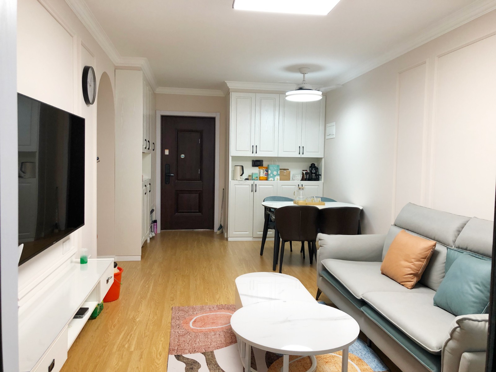 本案例是兩居室,業(yè)主的需求就是需要一個溫馨的家的感覺,喜歡暖色調在剛開始溝通整體風格的時候就是選擇了現(xiàn)代簡約, 解決方案:顏色的選擇上業(yè)主小姐姐喜歡綠色,后面考慮到綠色整體搭配軟裝是有一點缺陷,就放棄了, 設計理念:面積不大,在滿足日常的空間需求設計的同時,增加一些色彩,更加溫暖。 設計亮點:在主臥去掉了主衛(wèi),設計成了衣帽間,這樣再多的衣服也不怕沒有地方收納,次臥我們定制了實木衣柜,也很實用呀。