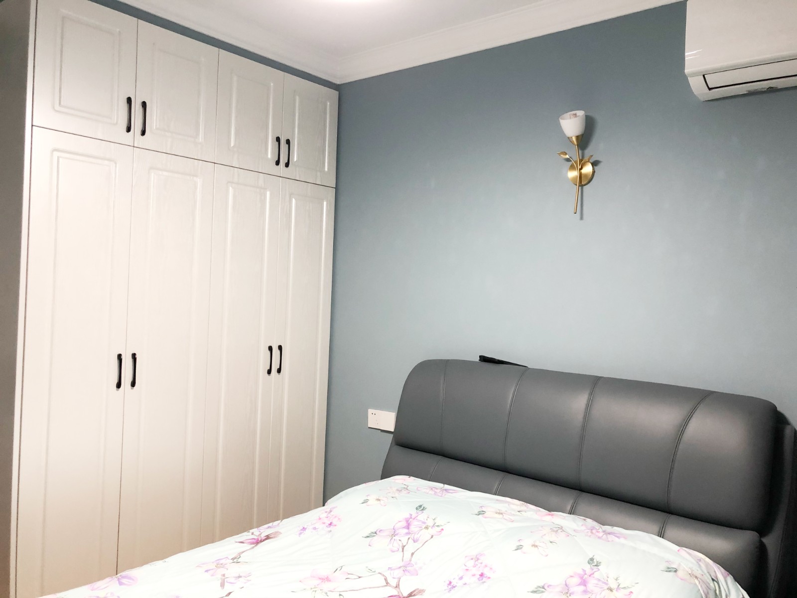 淡雅,白藍的相撞沒想到會這么的好看,床頭背景墻簡約又不簡單,別致的感覺,