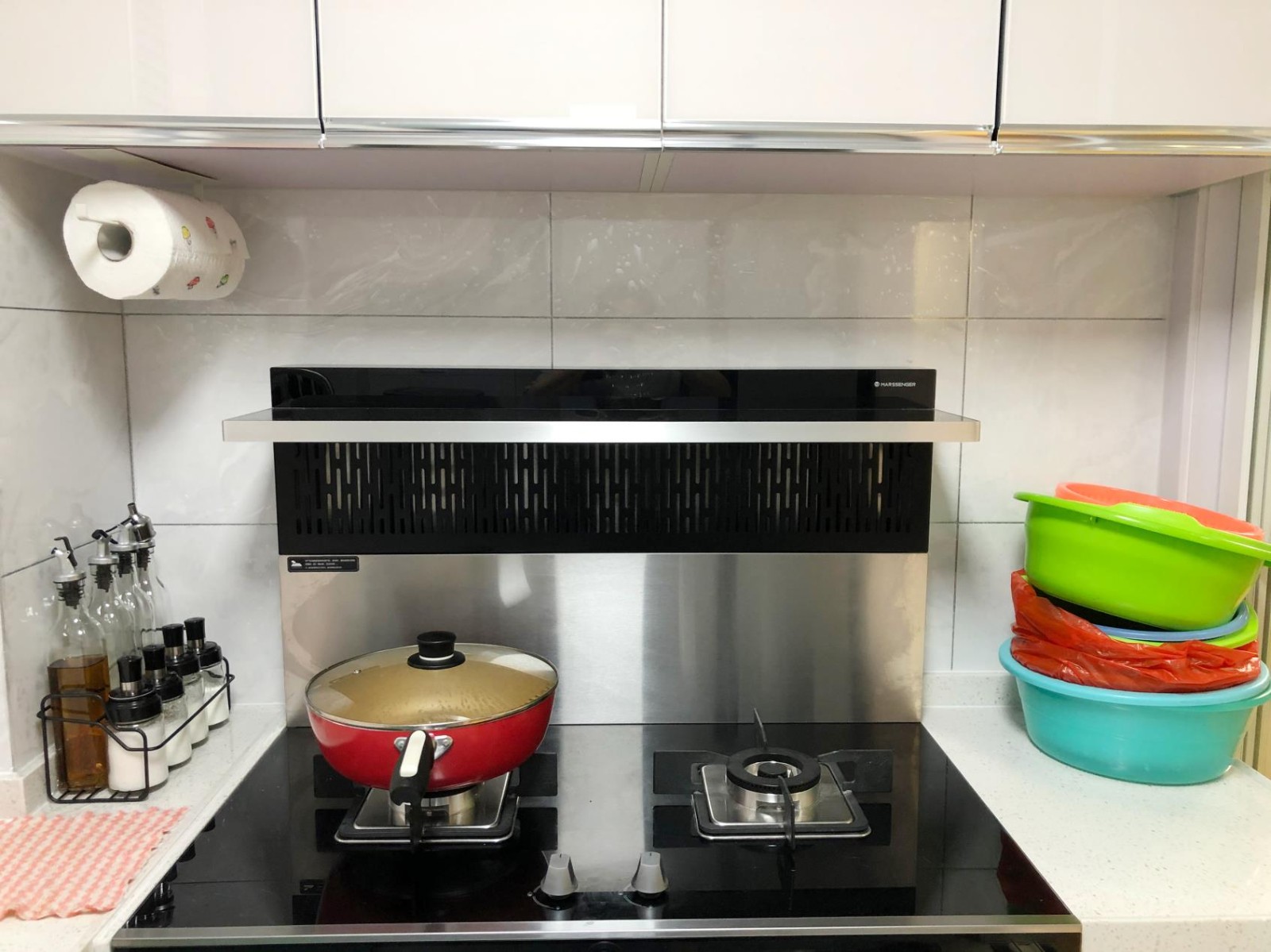 我們做的雙灶,做飯更方便,更快,旁邊留了一部分空間,裝菜也很方便。