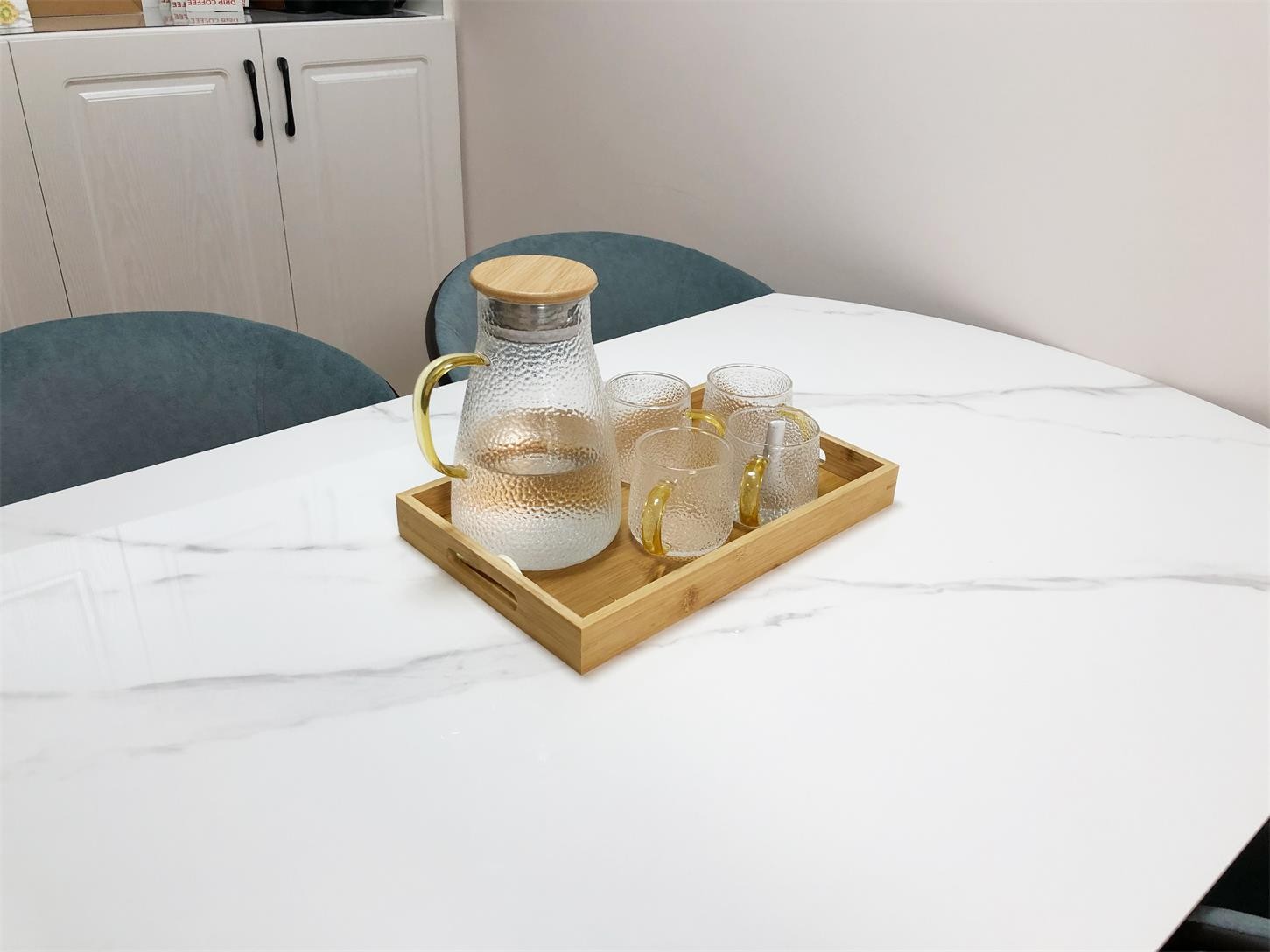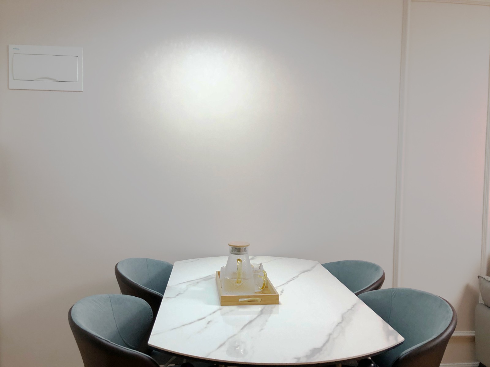 餐廳我們做了一個四人餐桌,足夠平常用,旁邊做了一排收納柜,日常收納一些東西也很方便。