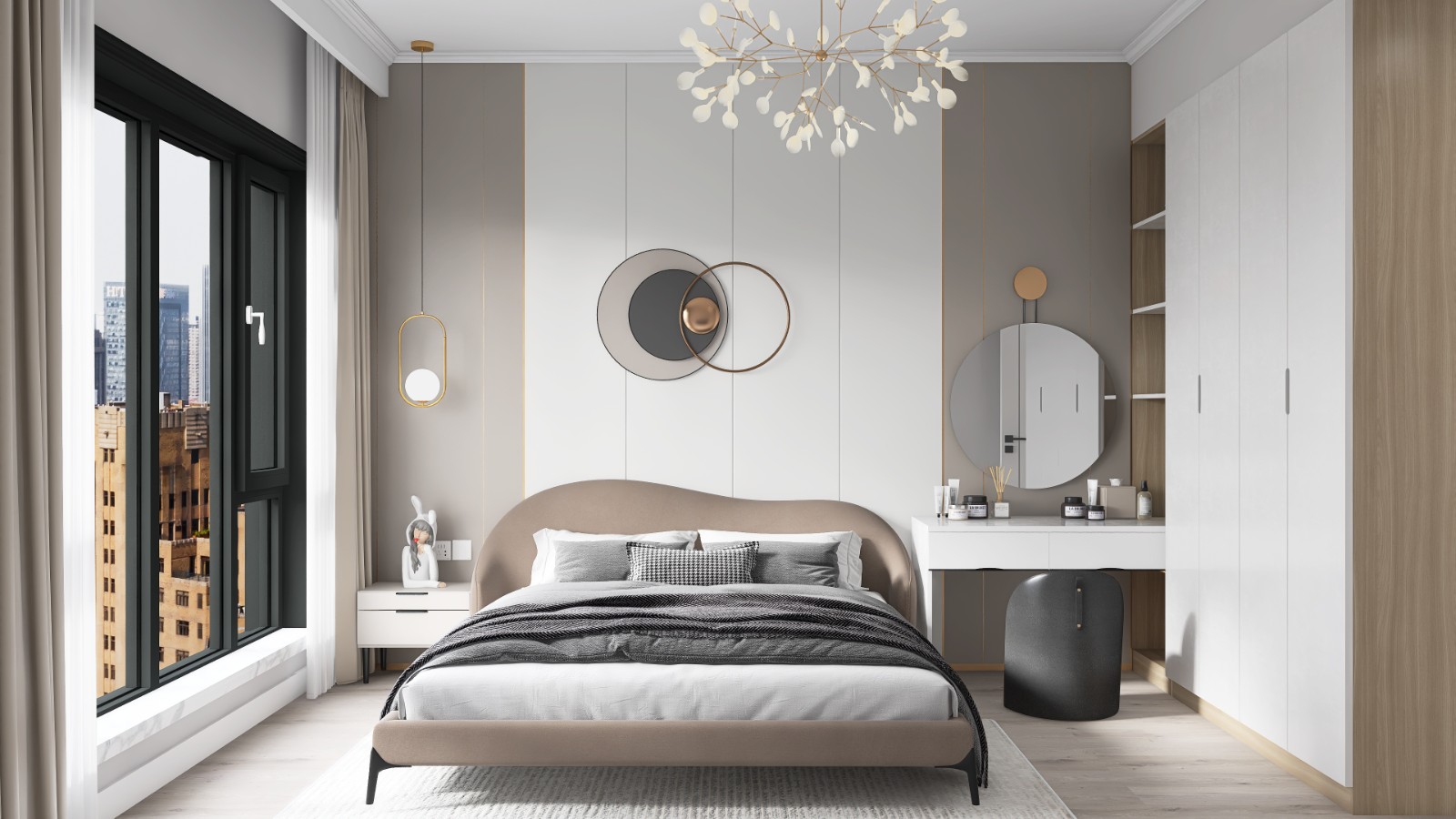 #臥室 #臥室設(shè)計 臥室區(qū)域臥室整體簡潔實用,在主臥進(jìn)行了造型墻設(shè)計,使用一些局部的吊燈增加設(shè)計感