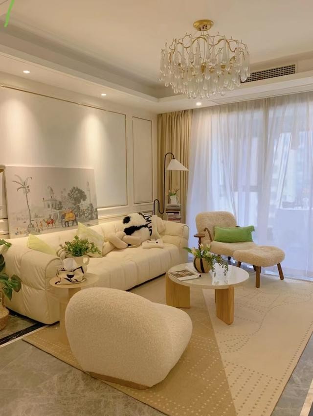 裝修比較簡(jiǎn)潔的房子,奶白色的背景墻,通刷乳膠漆,客餐廳地面通鋪地磚,臥室鋪個(gè)木地板,整體風(fēng)格有些偏法式,但卻并不浮夸。