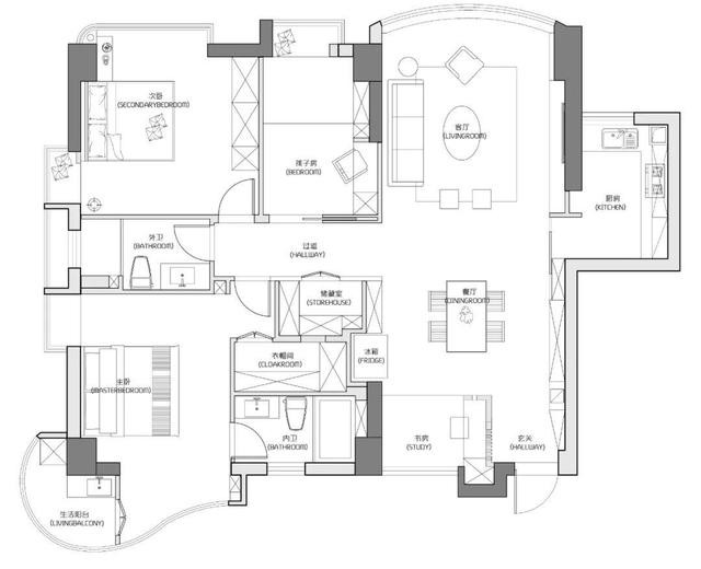 墻面以大面積白色為主,用的是嘉寶莉涂料,綠色環(huán)保,地面是灰色系耐臟大理石通鋪,走廊位置是淺灰色乳膠漆背景墻。打通了陽(yáng)臺(tái)門與客廳連在一起,這樣空間會(huì)顯大很多。