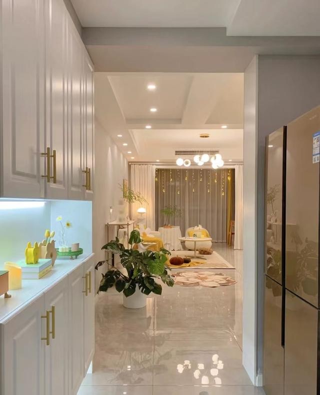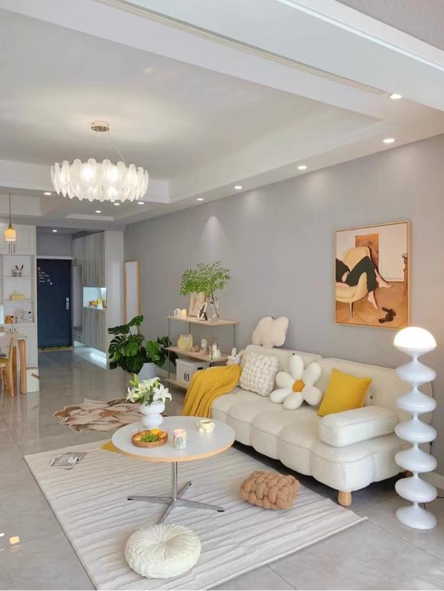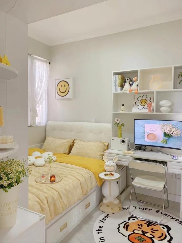 一個(gè)加入了挺多黃色元素的家,總能給人眼前一亮的感覺(jué),其次還加入了多一些的綠色和米色,整體色系比較統(tǒng)一,看起來(lái)就很舒服??蛷d以小清新為主,每個(gè)小角落的布置都不放過(guò),沙發(fā)上放幾只舒服的抱枕,擺上鮮花綠植,客廳溫馨又治愈。