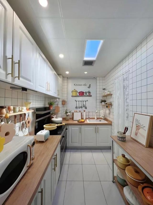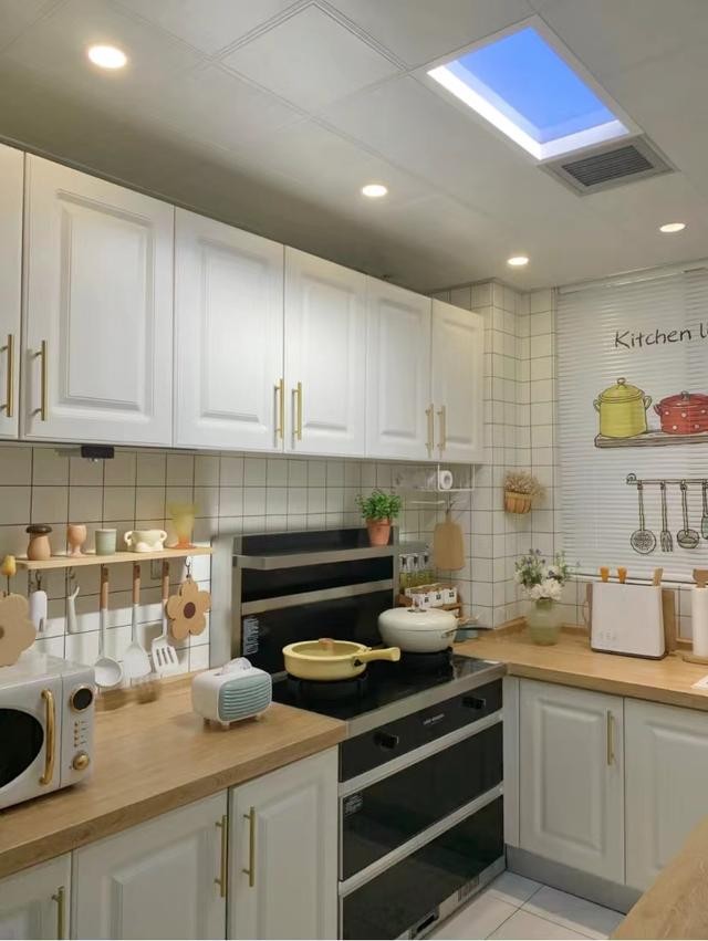看過(guò)了太多石英石的廚房臺(tái)面后,女主決定給自家廚房裝實(shí)木臺(tái)面,實(shí)木的顏色和紋理,比石材溫潤(rùn)許多,可以讓廚房看起來(lái)更溫馨。