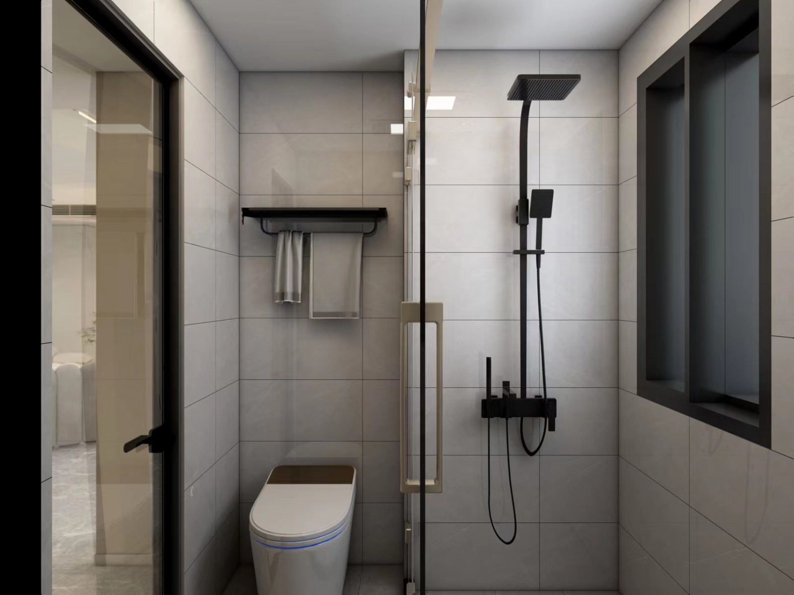 選擇了木色浴室柜,黑色的花灑,顏值都很高。鋪貼的瓷磚特別耐臟,太滿意了