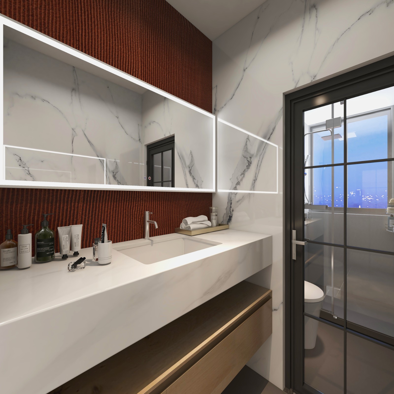 衛(wèi)生間干區(qū)用的是嘉寶莉***地理-天山峽谷2和嘉寶莉瑪爾波爵士白 衛(wèi)生間濕區(qū)嘉寶莉***地理-天山峽谷 安裝了非常實(shí)用的柜式鏡子,可以增加一些儲物空間,特別棒。
