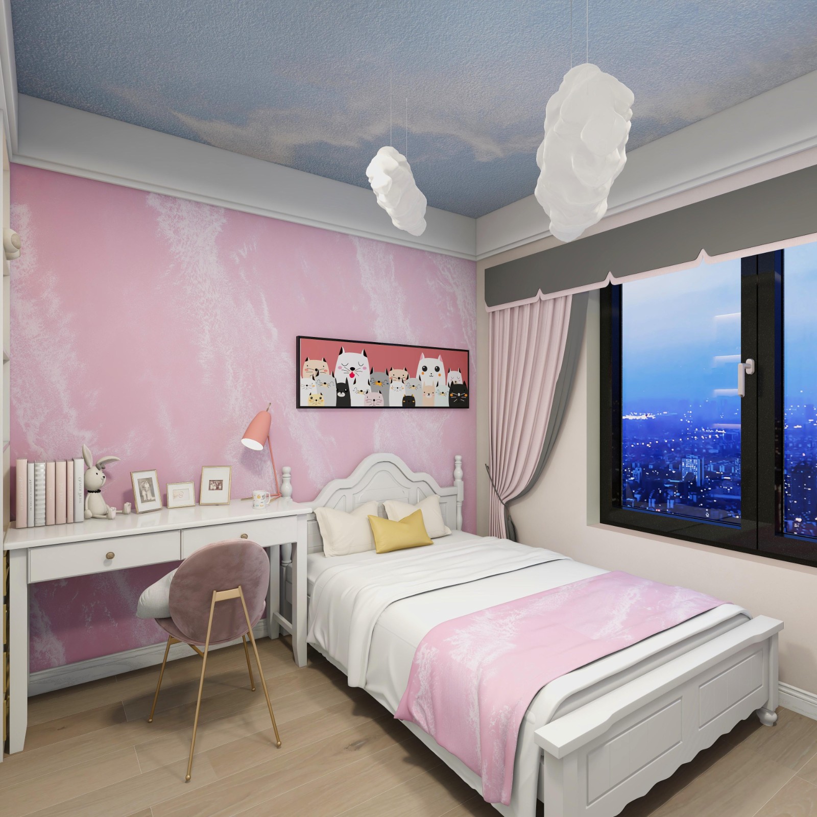 用的是女孩房嘉寶莉***地理-西澳粉攤 女孩房間其他墻面嘉寶莉微水泥 MS-09(細(xì)砂) 女孩房頂面嘉寶莉***地理-茶卡鹽湖 ,更加環(huán)保。