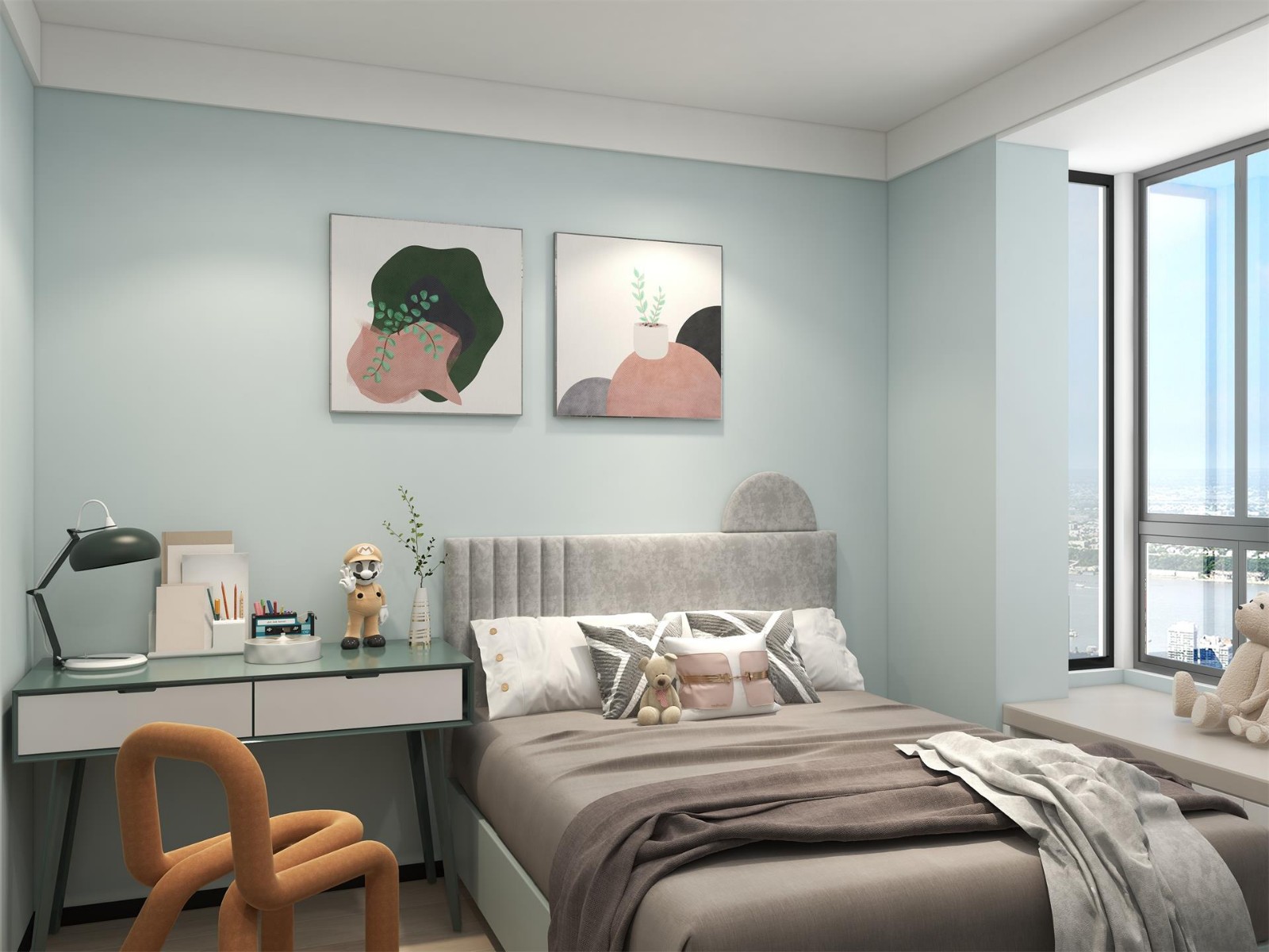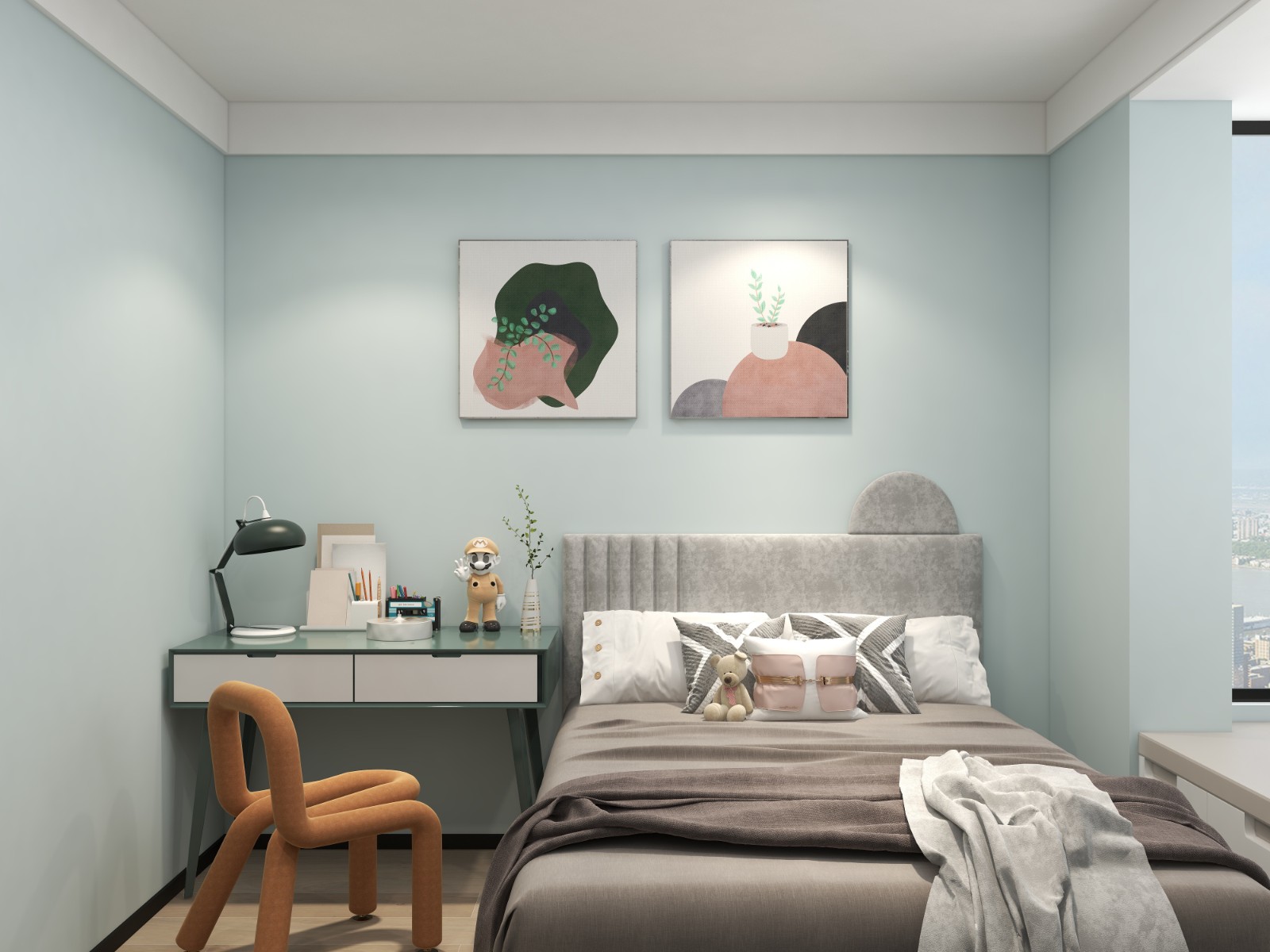 小孩房主要以藍(lán)色作為基調(diào),采用嘉寶莉琺維托 V-26藍(lán)色作為色彩點(diǎn)綴,為空間帶來(lái)清新感。