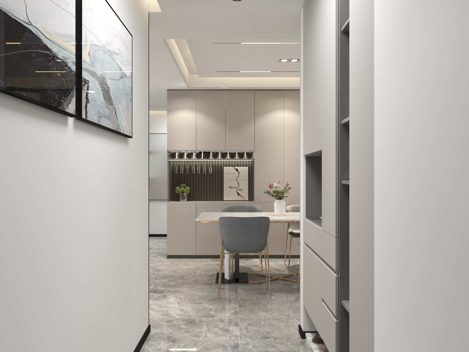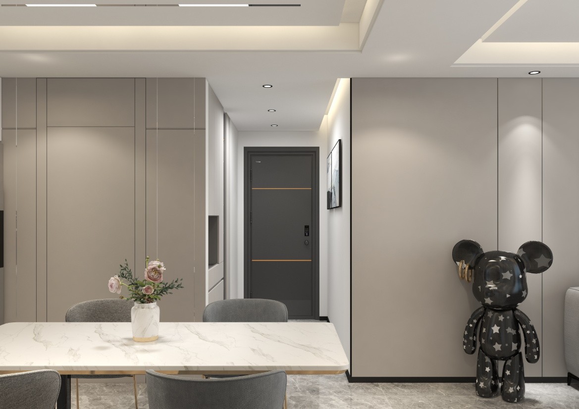 南北通透,進(jìn)屋便是玄關(guān),然后是餐廳,玄關(guān)墻壁上點(diǎn)綴幾幅飾品,感覺(jué)很別致。