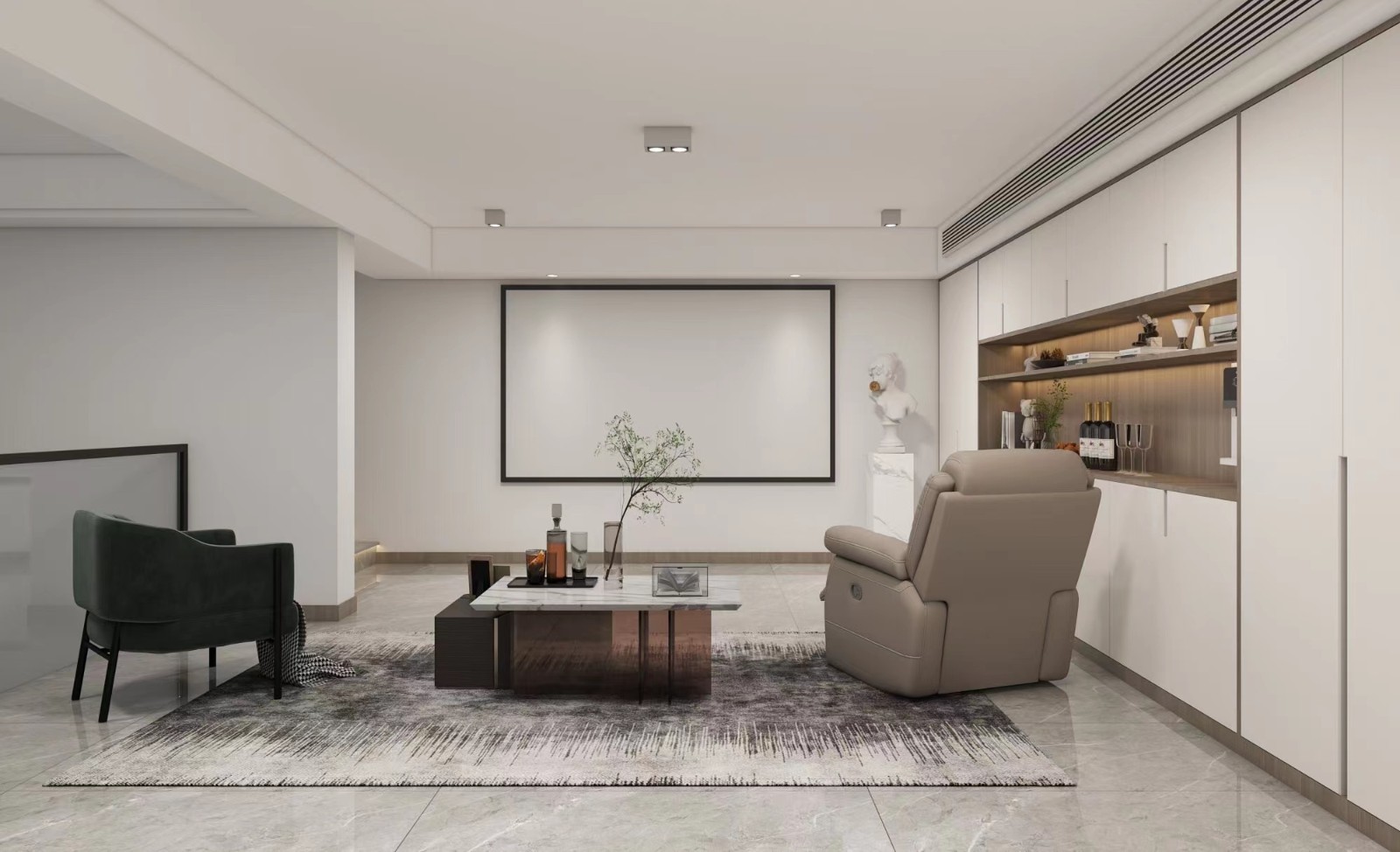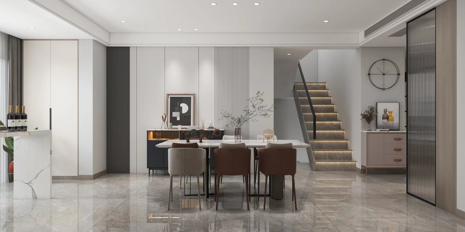 業(yè)主是一位有思想,愛(ài)玩游戲,對(duì)生活品質(zhì)有著極高追求的80后,希望通過(guò)這次設(shè)計(jì)創(chuàng)造出足夠多的生活空間,可以任意放飛自我,無(wú)拘無(wú)束。設(shè)計(jì)師結(jié)合業(yè)主喜好,將更多時(shí)尚潮流元素、現(xiàn)代休閑方式融入這套案例。為了保證原有空間的通透性,我們將原有的客廳全部給餐廳,讓整個(gè)空間動(dòng)線更流暢,客戶喜歡看電影,所以把客廳直接放在地下一層影音廳,既可以滿足客廳接待的功能又滿足日常觀看大片的需求!