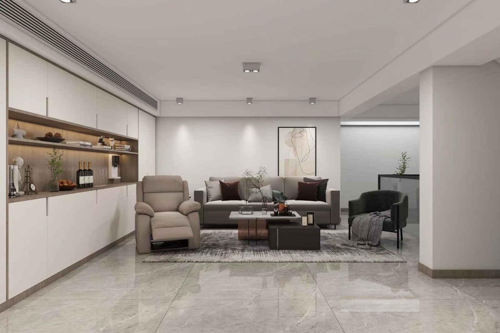 。設(shè)計(jì)師結(jié)合業(yè)主喜好,將更多時(shí)尚潮流元素、現(xiàn)代休閑方式融入這套案例。