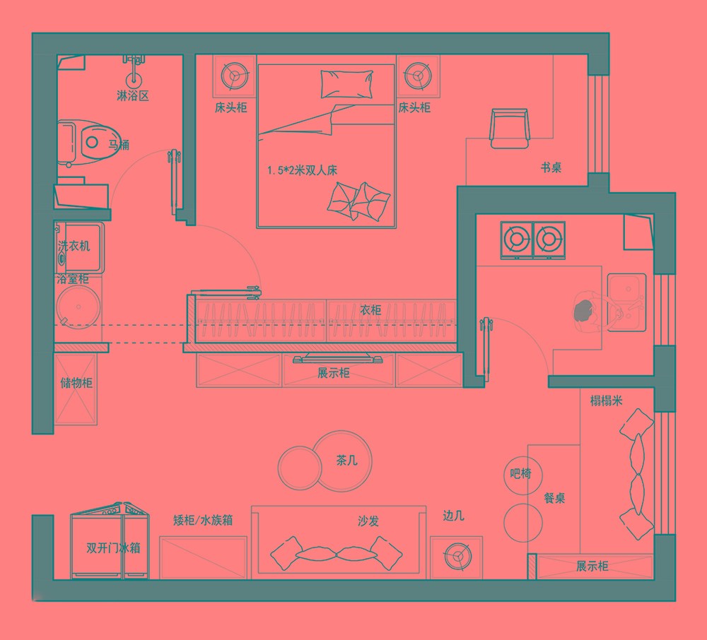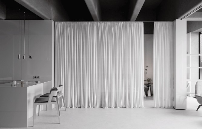 全開放的布局在設(shè)計(jì)師精心布置下,不管是空間比例還是動(dòng)線看起來(lái)更為合理,全白色調(diào)的應(yīng)用更是營(yíng)造出舒適寧?kù)o的感覺。