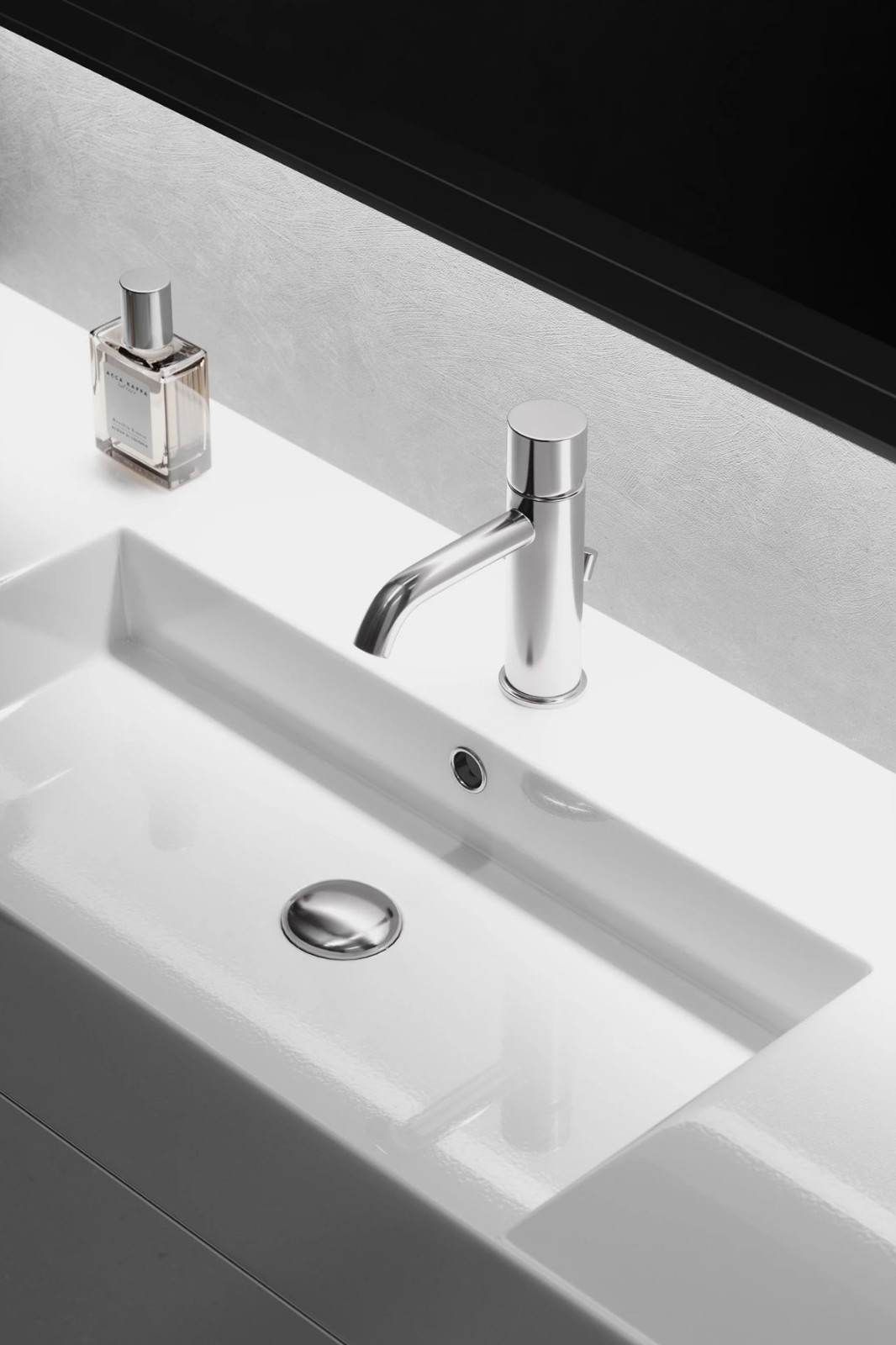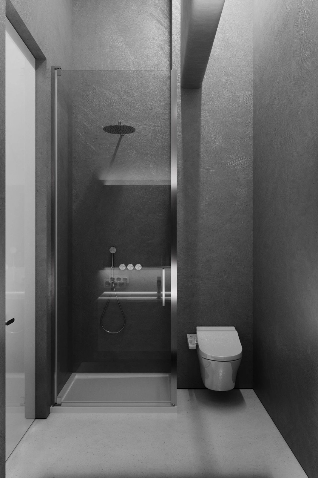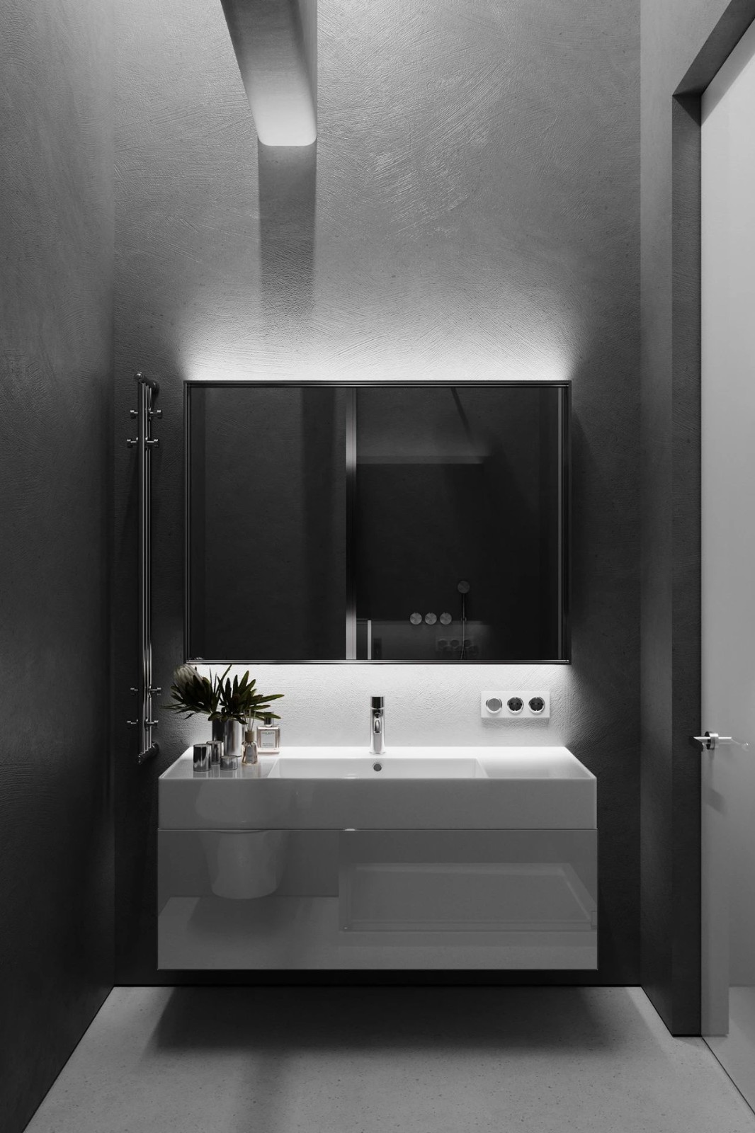 衛(wèi)生間的空間較為狹小,設(shè)計(jì)將其分為左右兩個(gè)板塊,一邊是洗漱區(qū),一邊是坐便區(qū)和淋浴區(qū)。