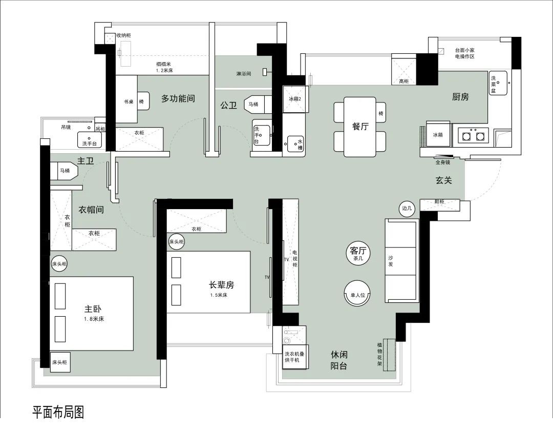 原始戶型是88㎡的三室兩廳一廚兩衛(wèi), 在有限空間內(nèi)塞下這么多功能區(qū), 導致每一處空間都不夠?qū)挸ǎ? 需要將飄窗合理規(guī)劃至功能區(qū)內(nèi),提高利用率。