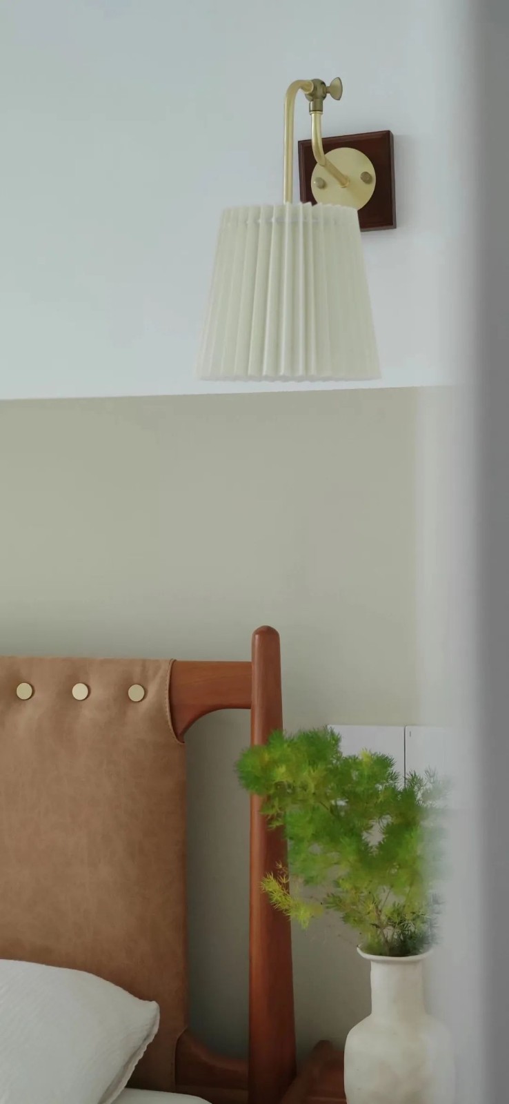 即使只是偶爾使用的長輩房, 顏值和實用性也毫不松懈, 床頭背景刷了暖咖色的半墻漆, 整個空間更多幾許復古,溫馨柔和。