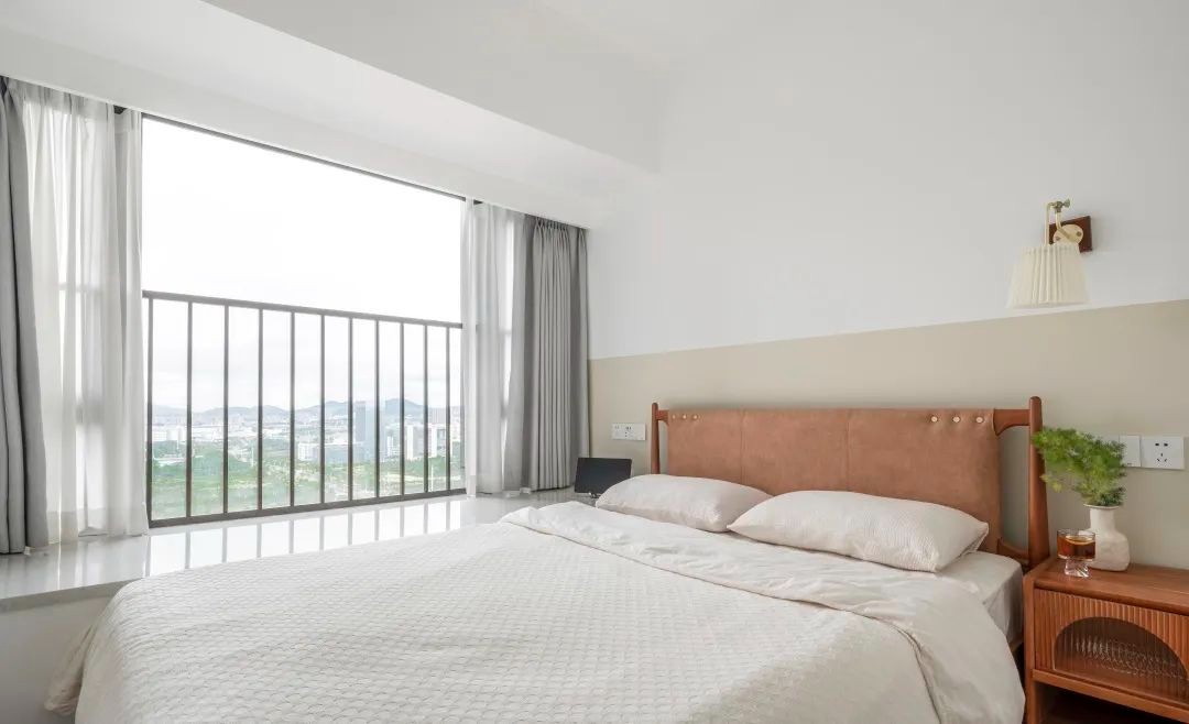 皮質(zhì)搭配原木的床頭, 長虹玻璃的床頭柜, 都透著幾分寧靜雅致的情調(diào)。