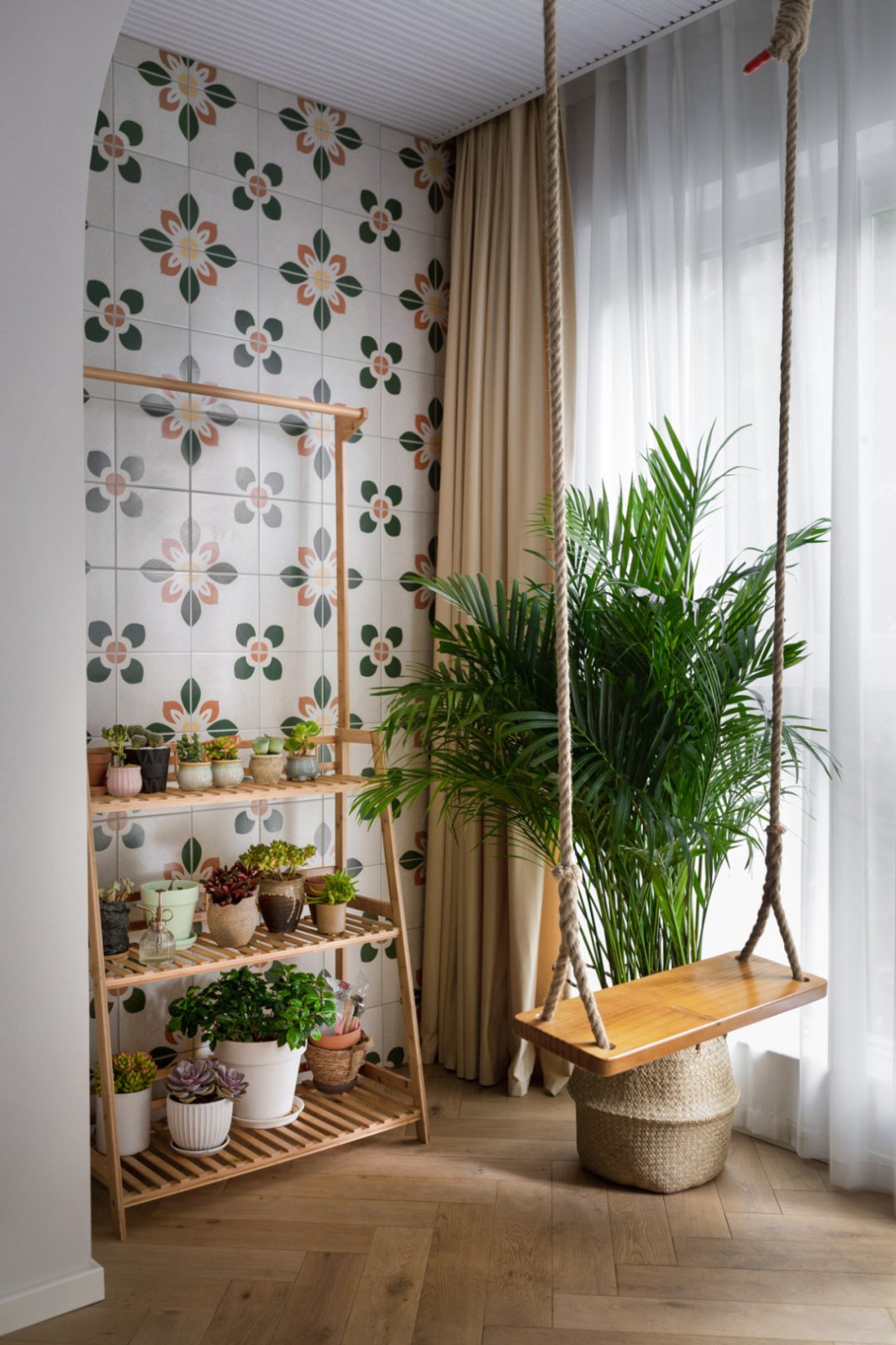 使用俏皮靈動的水磨瓷磚及小型花磚調(diào)動氣氛,讓原本無聊呆板的空間充滿了可愛活潑的個性。