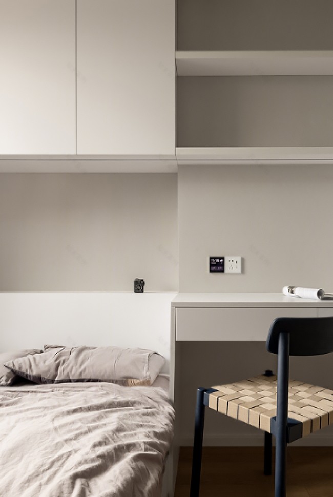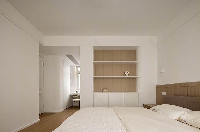 白墻木色為底,新增梳妝臺及收納,大筆觸中進(jìn)行細(xì)部勾勒,你只需安然隨這空間呼吸——予人寧靜、墜入遐想,一切靈感再次歸攏。