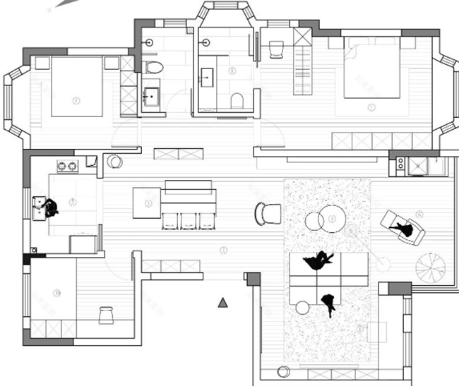 147㎡現(xiàn)代極簡(jiǎn)風(fēng)案例,設(shè)計(jì)師整體選用黑白色調(diào),與之搭配簡(jiǎn)約又不失精致的軟裝飾品,從中透露屋主不俗的審美與格調(diào)。