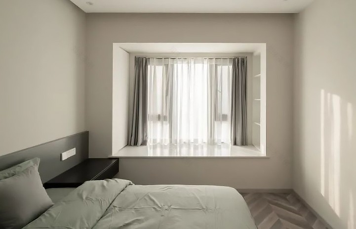 利用飄窗兩側(cè)打造收納柜,開放與封閉兼具,嵌入式設計不會額外占據(jù)空間,但卻增加了不少收納容量。