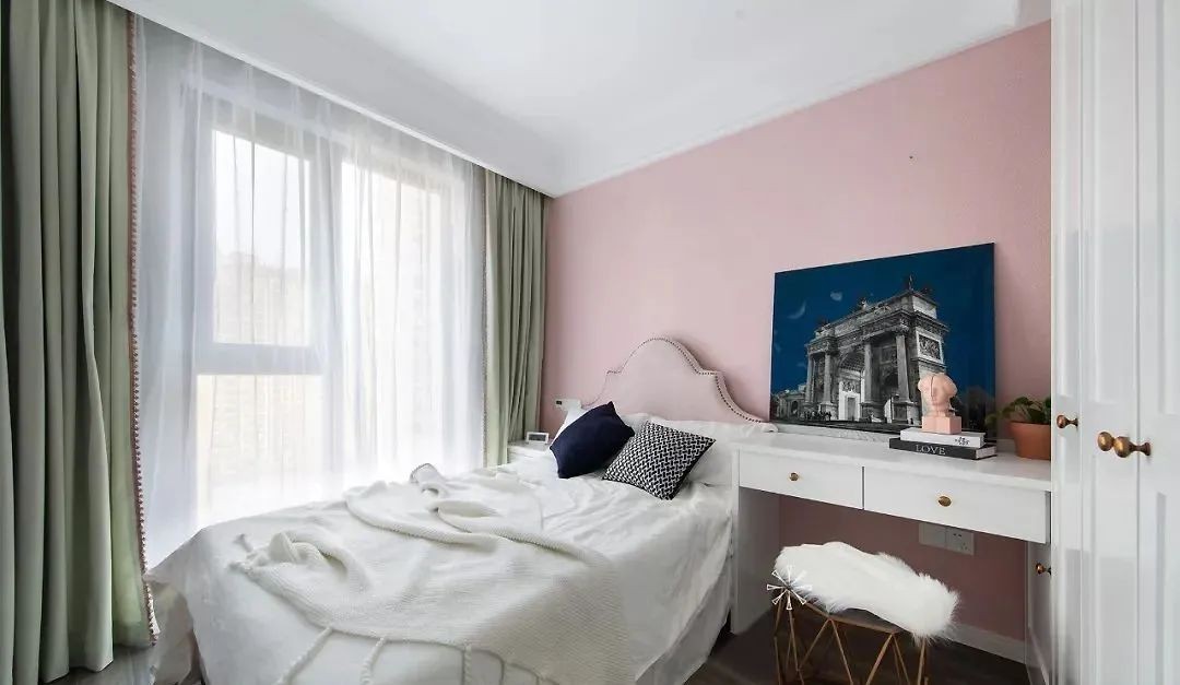 次臥白與粉的色調(diào)組合是絕妙的溫柔CP 讓身心得到一種置于云端的美好感受