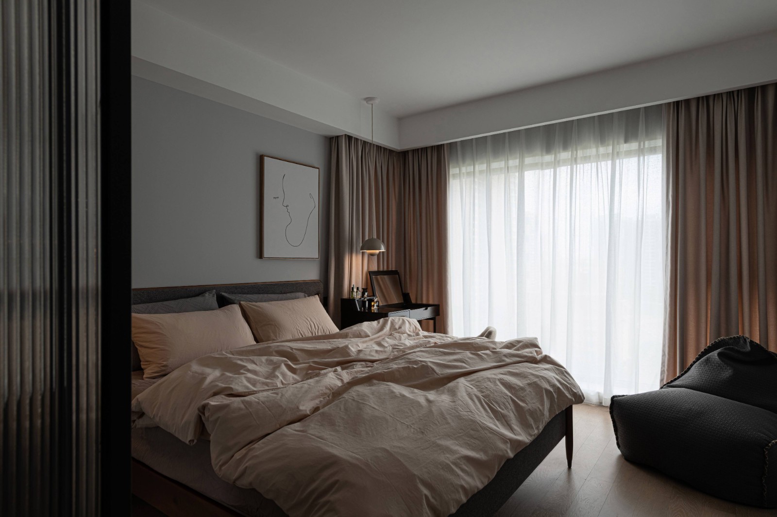 米色織物與棕色木質(zhì)的搭配帶著柔軟的記憶,是于時(shí)間上的美的成立,耐人尋味。