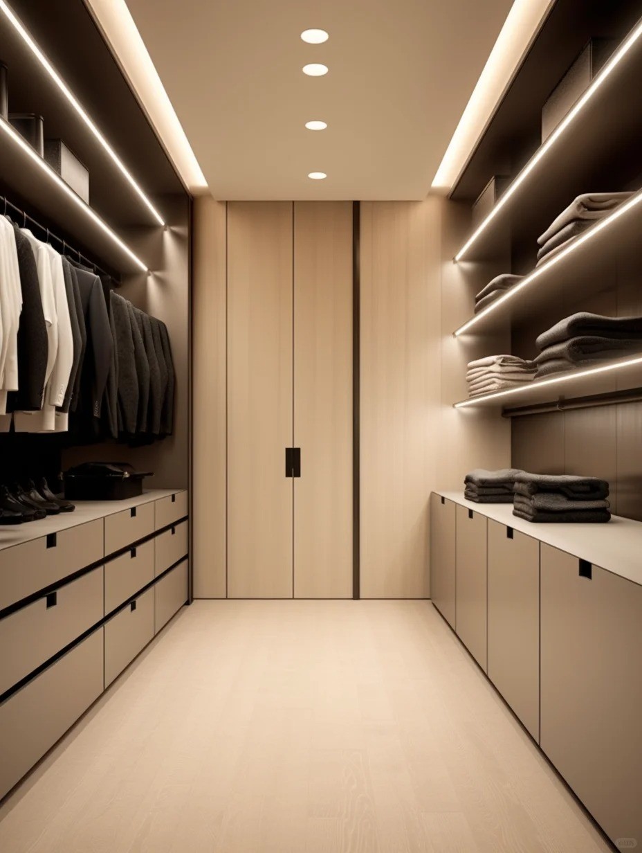 微水泥風(fēng)衣帽間,大通柜,顯得空間很大。
