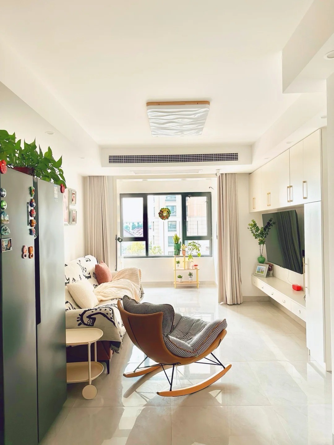 整體空間都是暖色系,讓人一回到家就感覺到溫馨舒適,空間也是既顯大又干凈整潔。