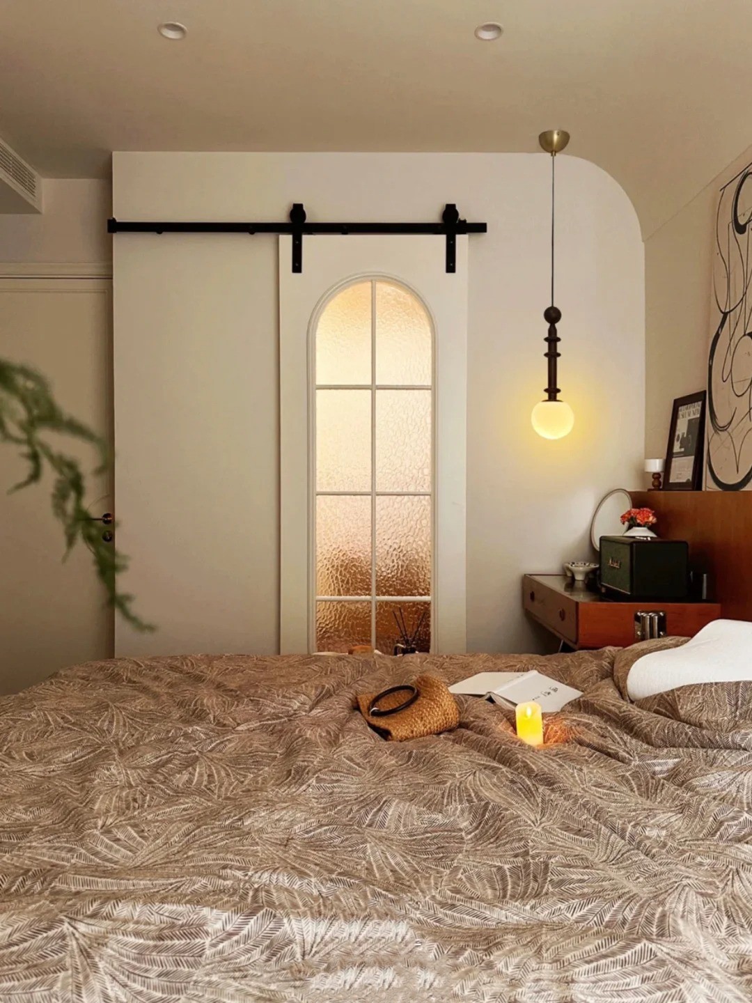 作為入戶后的視覺中心點,其 功能性與美觀性 缺一不可。整體色調(diào)以白色為主,黑色,棕色作為點綴,奠定溫柔不失質(zhì)感的基調(diào),符合業(yè)主對法式風的期待。