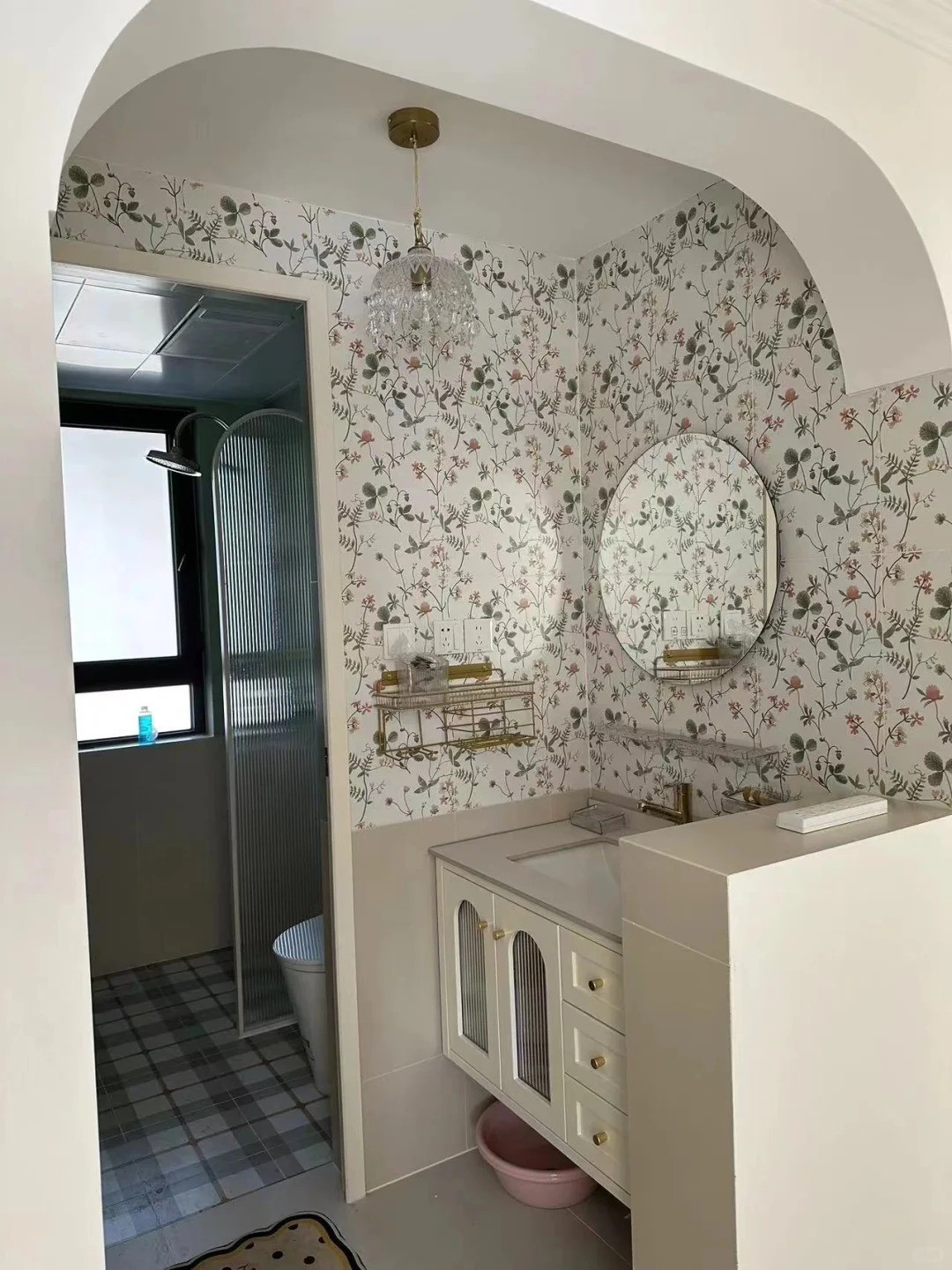 花色墻面給衛(wèi)生間增加了一絲趣味