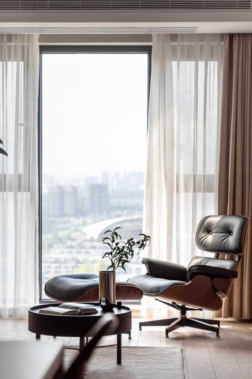 延續(xù)特調(diào)的淺咖至主臥,有趣的是,干凈統(tǒng)一的底色恰巧與小區(qū)的外墻形成了默契。橡木的紋路肌理透露著大自然留下的痕跡,與墻面和茶玻床頭氛圍燈相互呼應(yīng),產(chǎn)生奇妙的美學(xué)反應(yīng)。