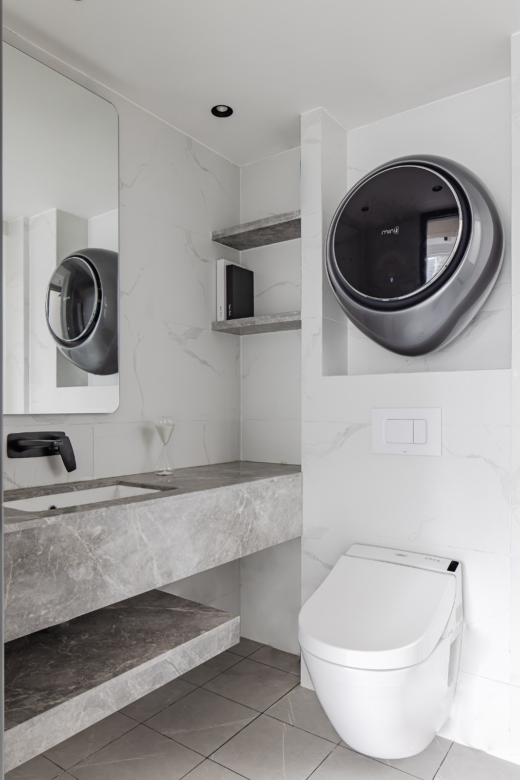 懸挑臺盆和墻排馬桶減少了衛(wèi)生死角的形成更方便打理