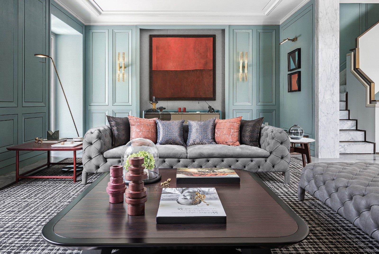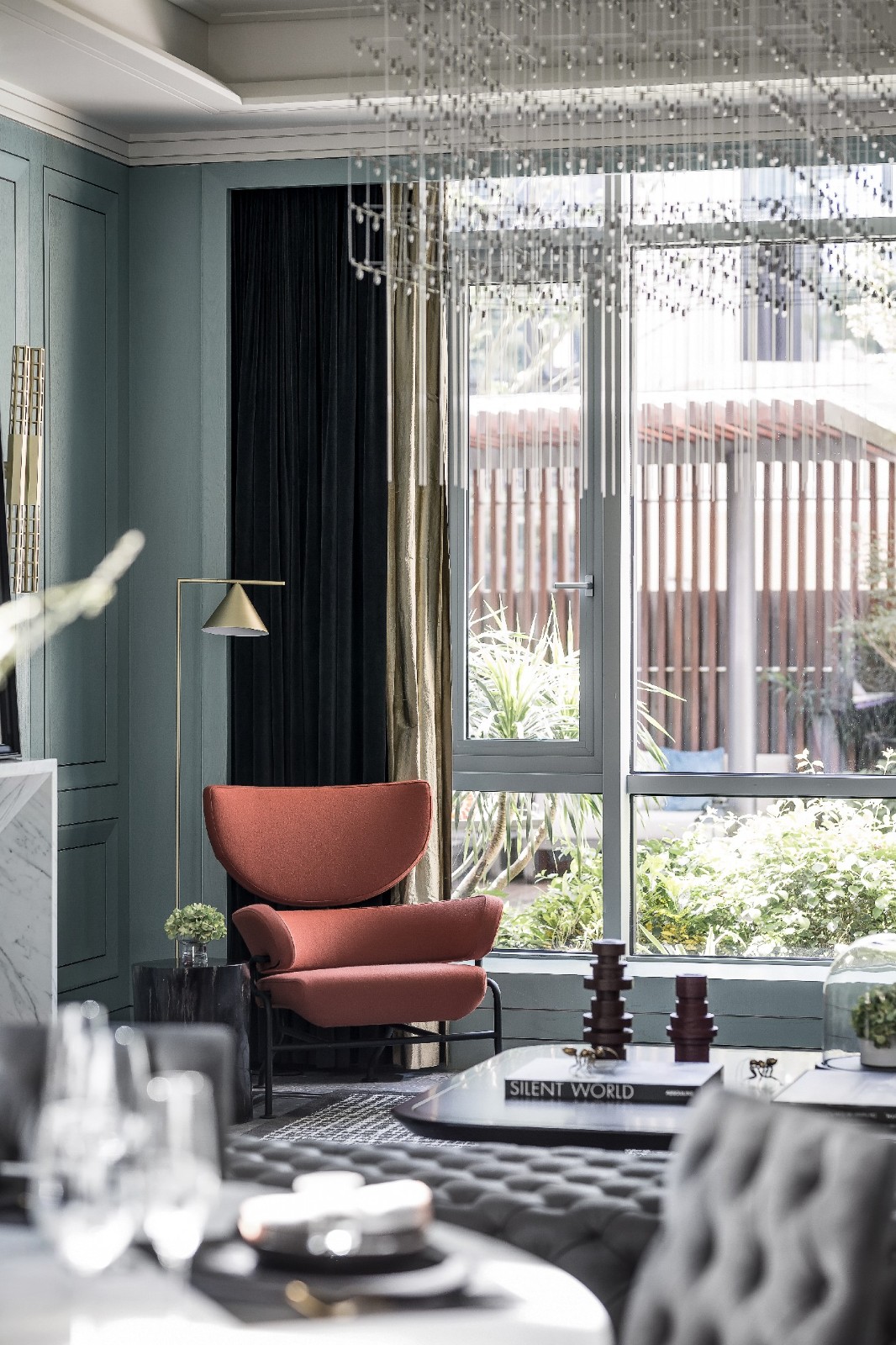 瓷綠色的灰雅空間里 靜謐內(nèi)斂的月影灰 輕快熱情的探戈橘 猶如律動(dòng)的音符 隨性優(yōu)雅間賦予空間情感張力