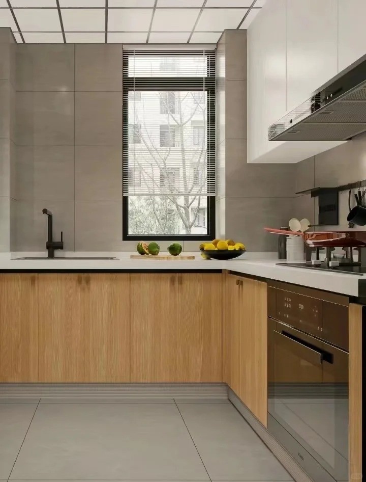 陽臺打通,打造成客餐廳陽臺一體,80*80白色柔光瓷磚通鋪,簡約的石膏線條背景墻,不壓層高的雙眼皮邊頂,讓我的小家在視覺上顯大許多