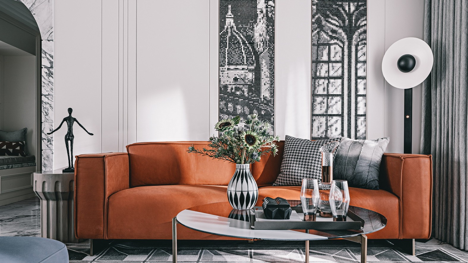 西方藝術(shù)與現(xiàn)代極簡(jiǎn)美學(xué)交融,古典主義藝術(shù)結(jié)合現(xiàn)在極簡(jiǎn)主義,用純粹的對(duì)比色塊,理性的線條勾勒出空間的力量美感,展現(xiàn)時(shí)代下感性與理性的人文內(nèi)涵。我們希望空間有人的純粹自在,沒有歷史的沉重,不受任何時(shí)代的環(huán)境束縛,帶著鮮明的個(gè)性。