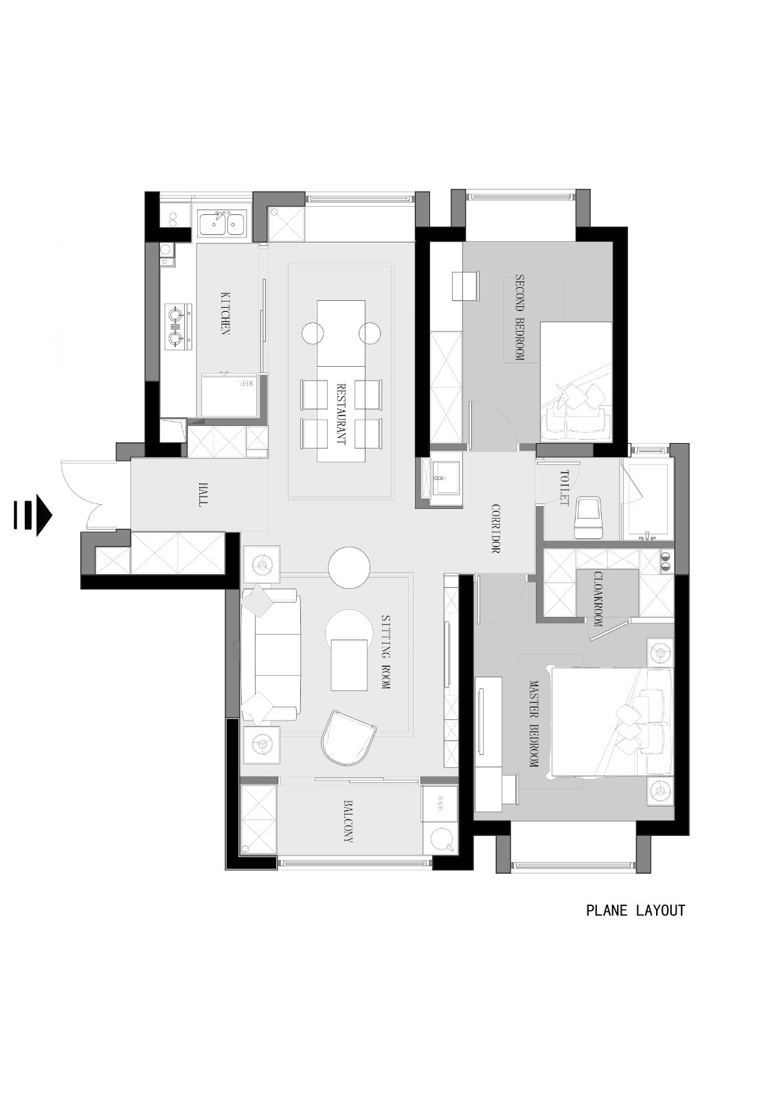 將客餐廳陽臺并進(jìn)室內(nèi),增加使用面積的同時(shí),打造南北通透的空間感。