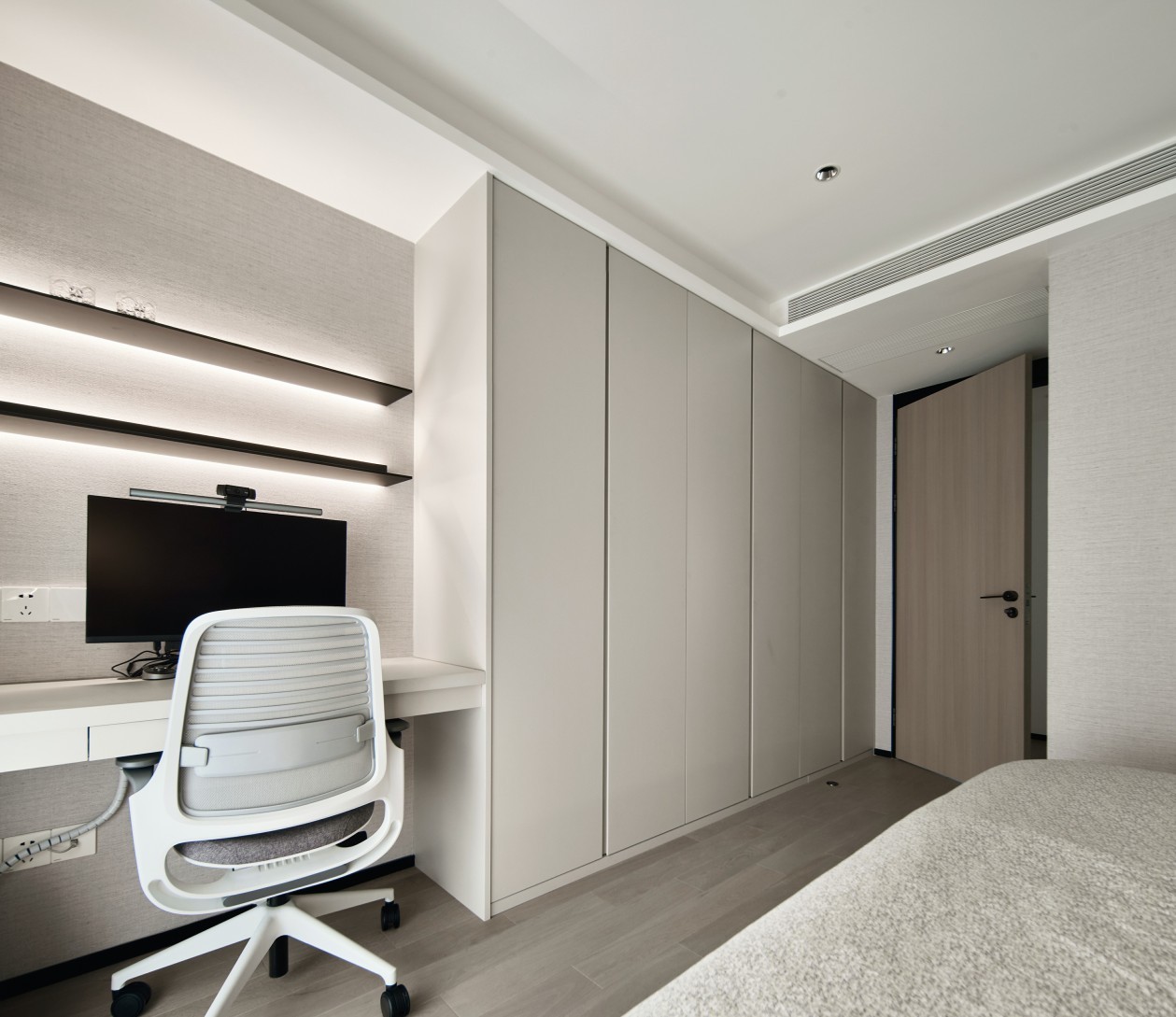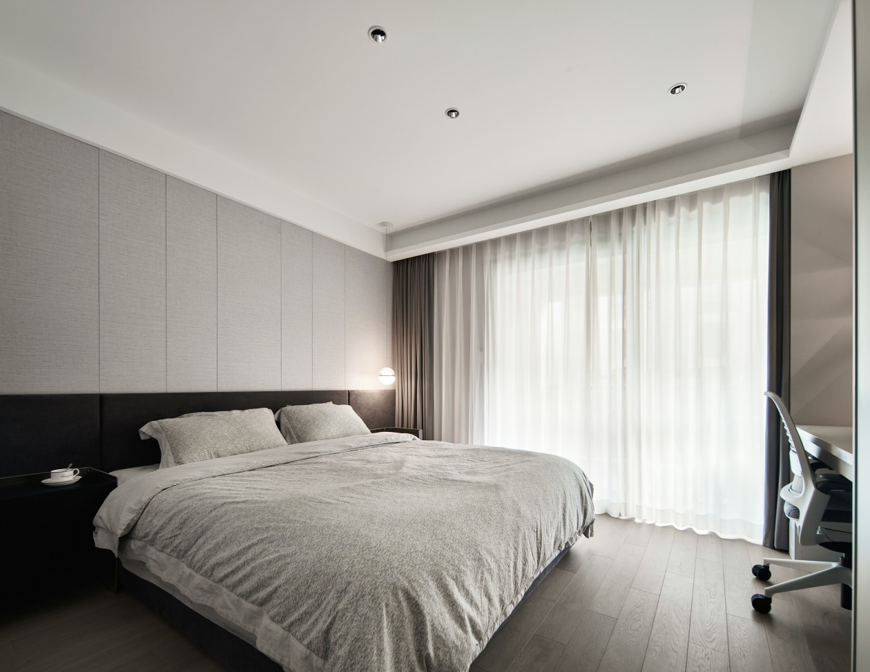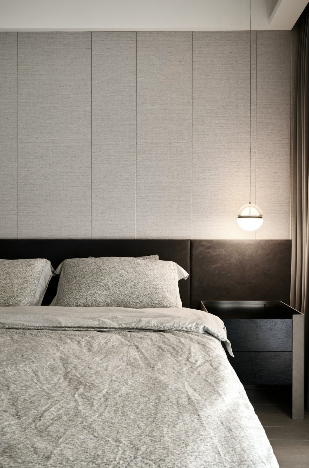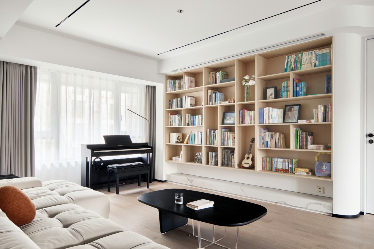 取締傳統(tǒng)的電視背景墻,而以隱藏式的投影幕布創(chuàng)造屬于他們的家庭影院,