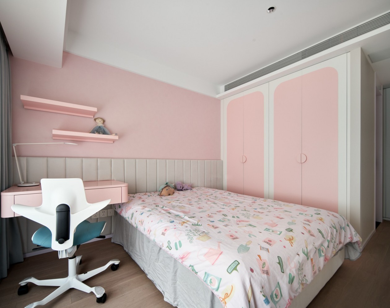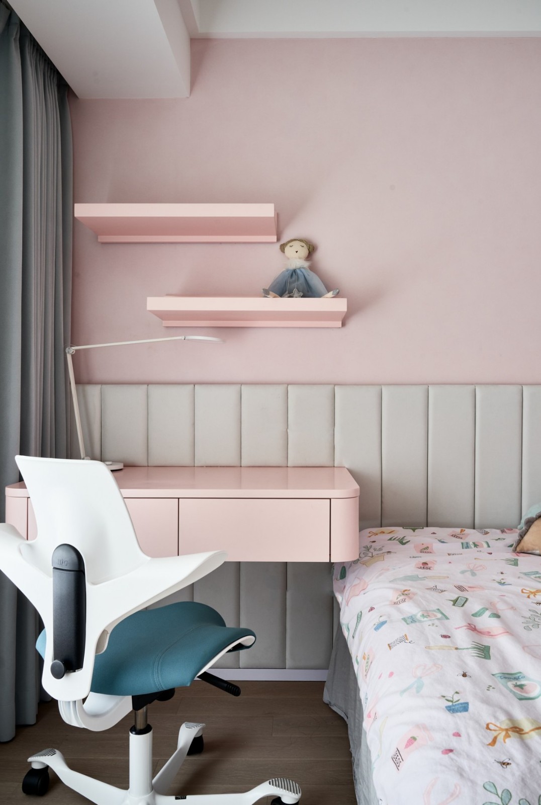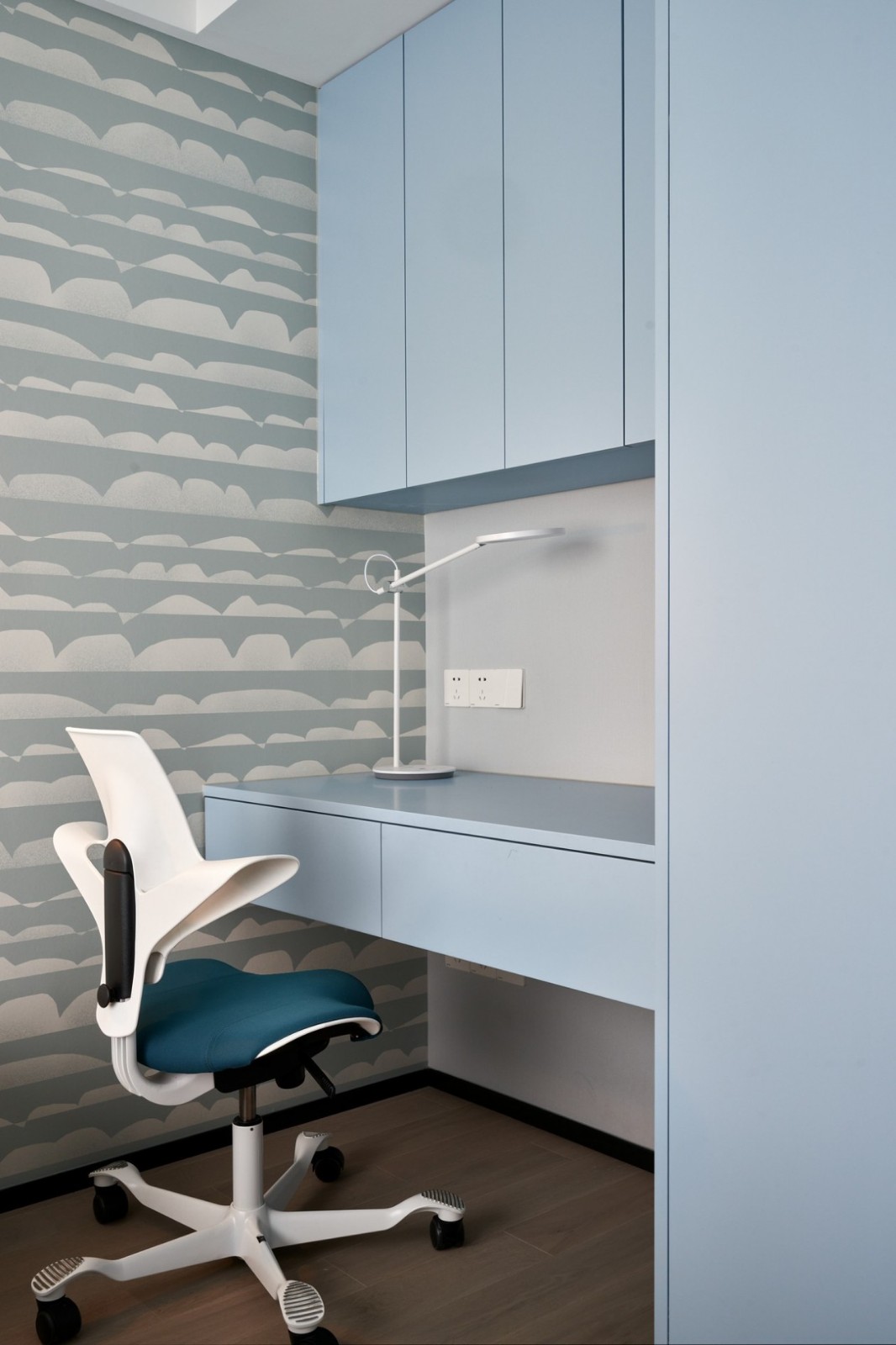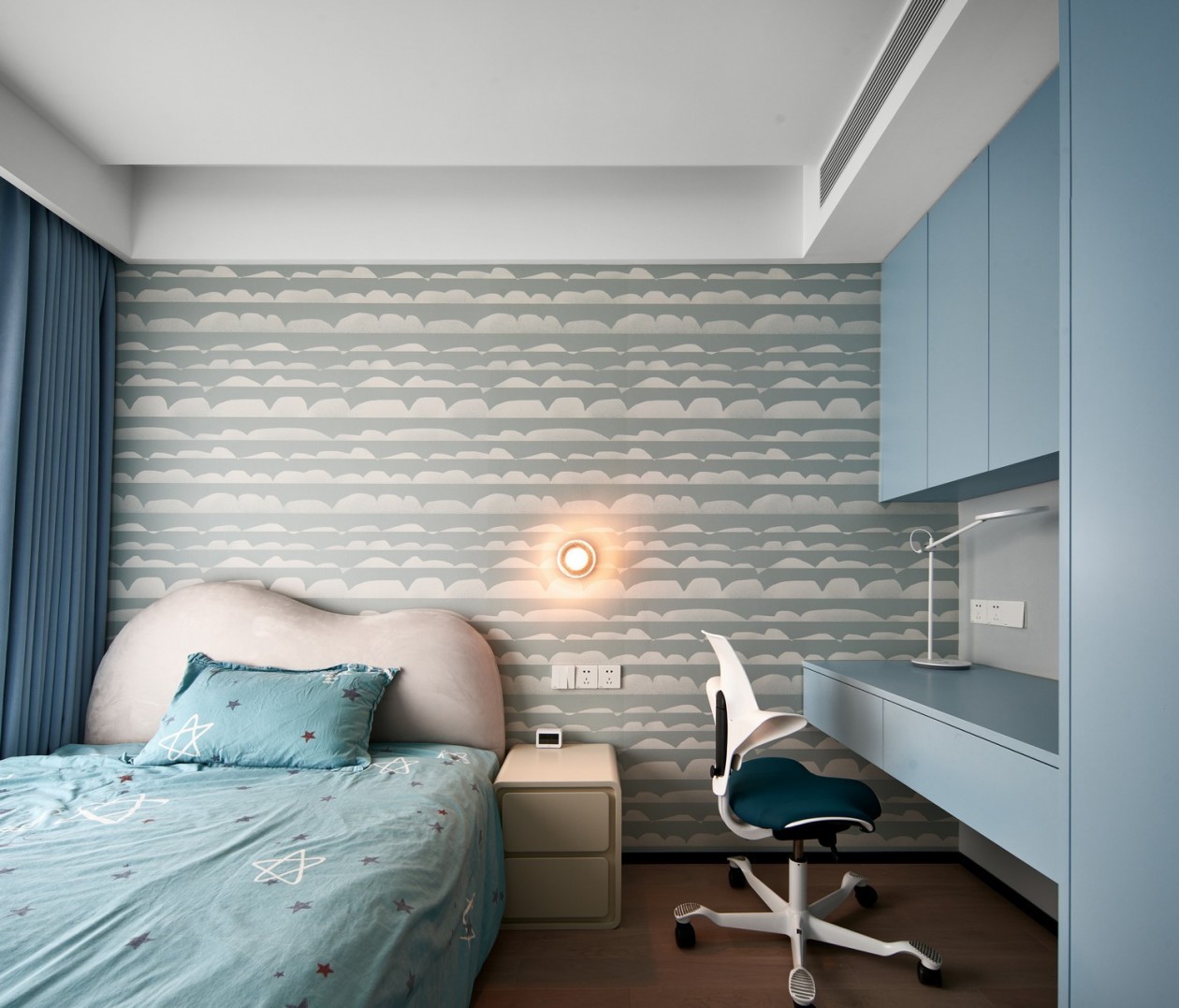 取締傳統(tǒng)的電視背景墻,而以隱藏式的投影幕布創(chuàng)造屬于他們的家庭影院,