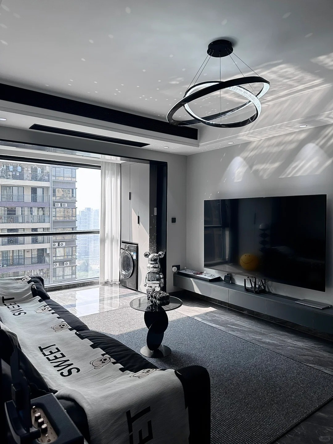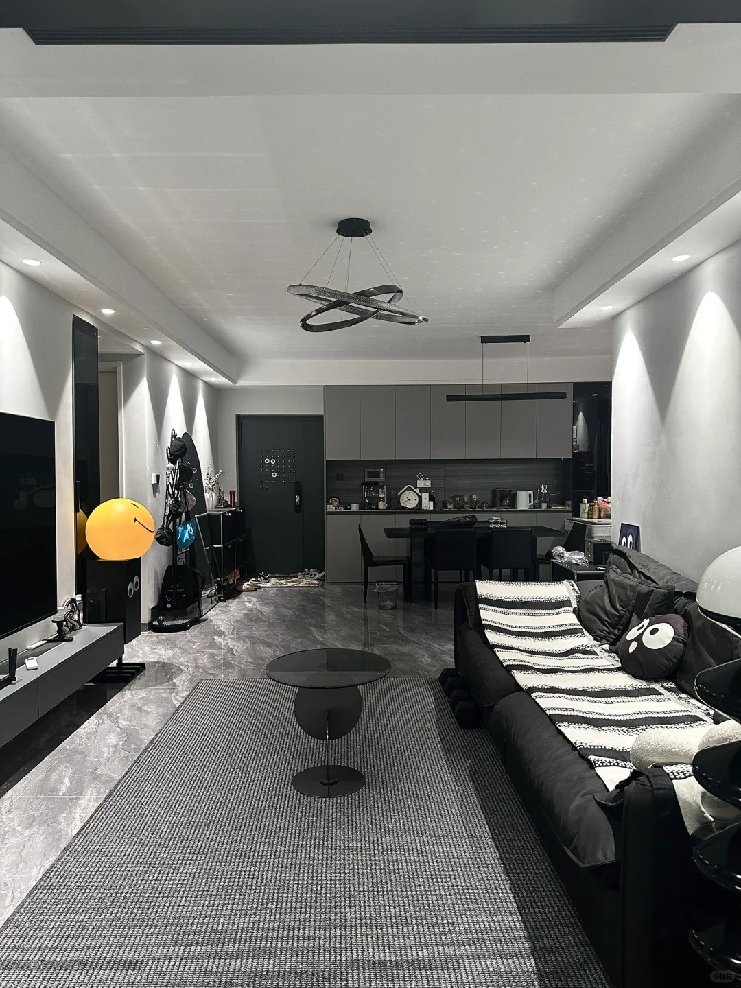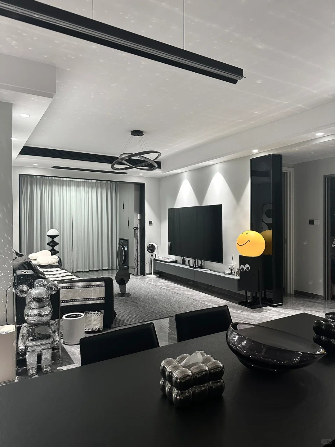 全屋黑白灰 軟裝盡量不超過五種顏色 在軟裝選擇上大件家具都選的黑色