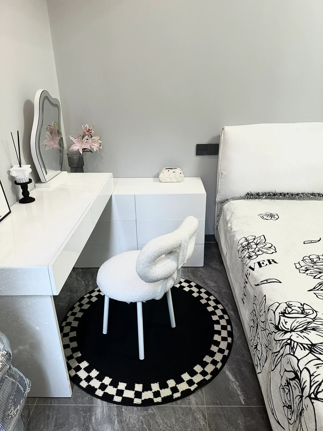 再用淺色床品用來大面積提亮 做到了即又不失溫馨 黑白配色的裝修簡約耐看